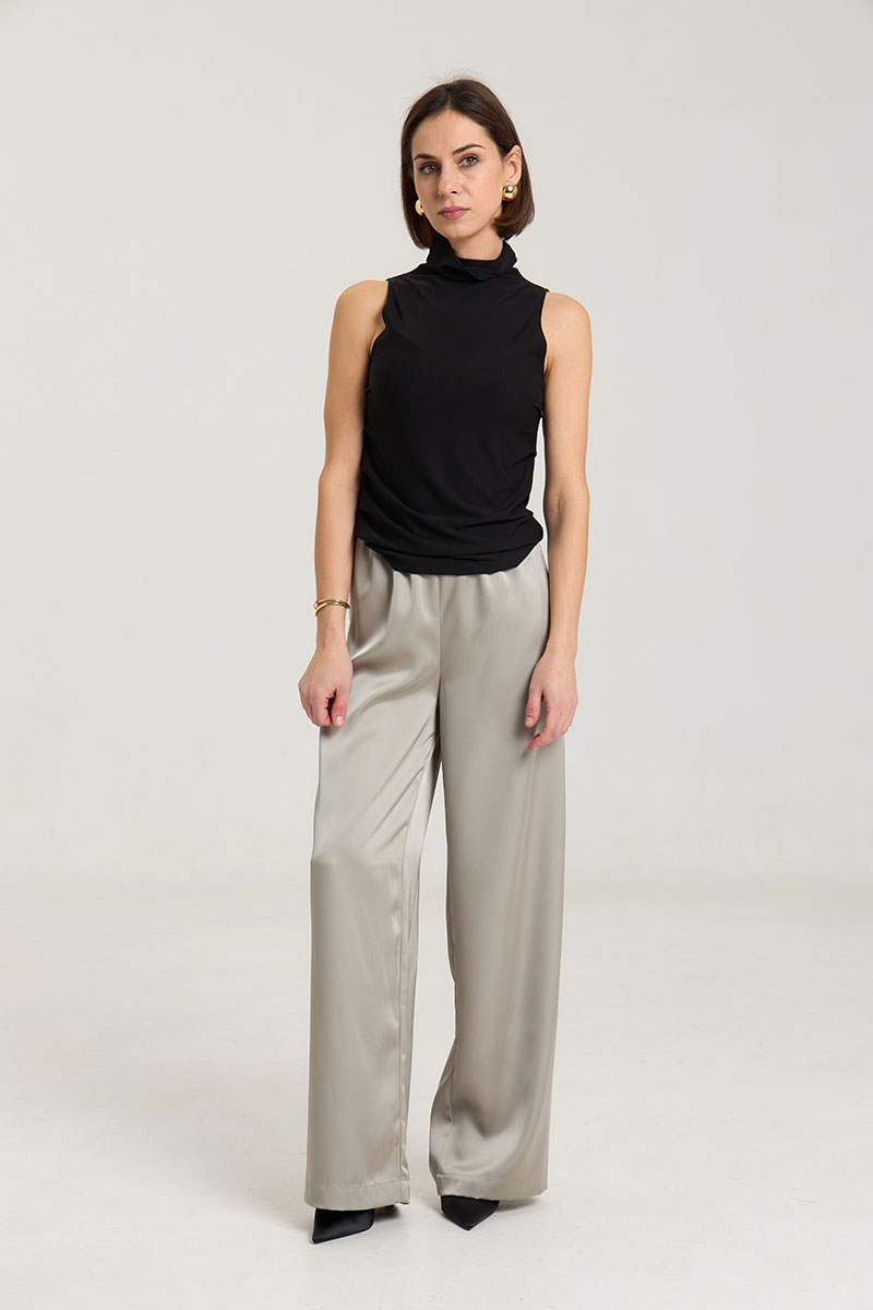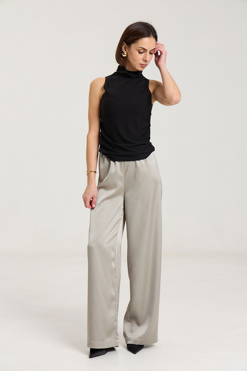 Прямые брюки из струящегося атласа бесспорно станут вашим фаворитом в гардеробе, талия высокая, брюки на резинке.Вещи из атласа отлично вписываются в любой стиль и подходят для разных поводов, удобная посадка, не сковывают движения, сочетайте с топом из нашей коллекции арт.2298.