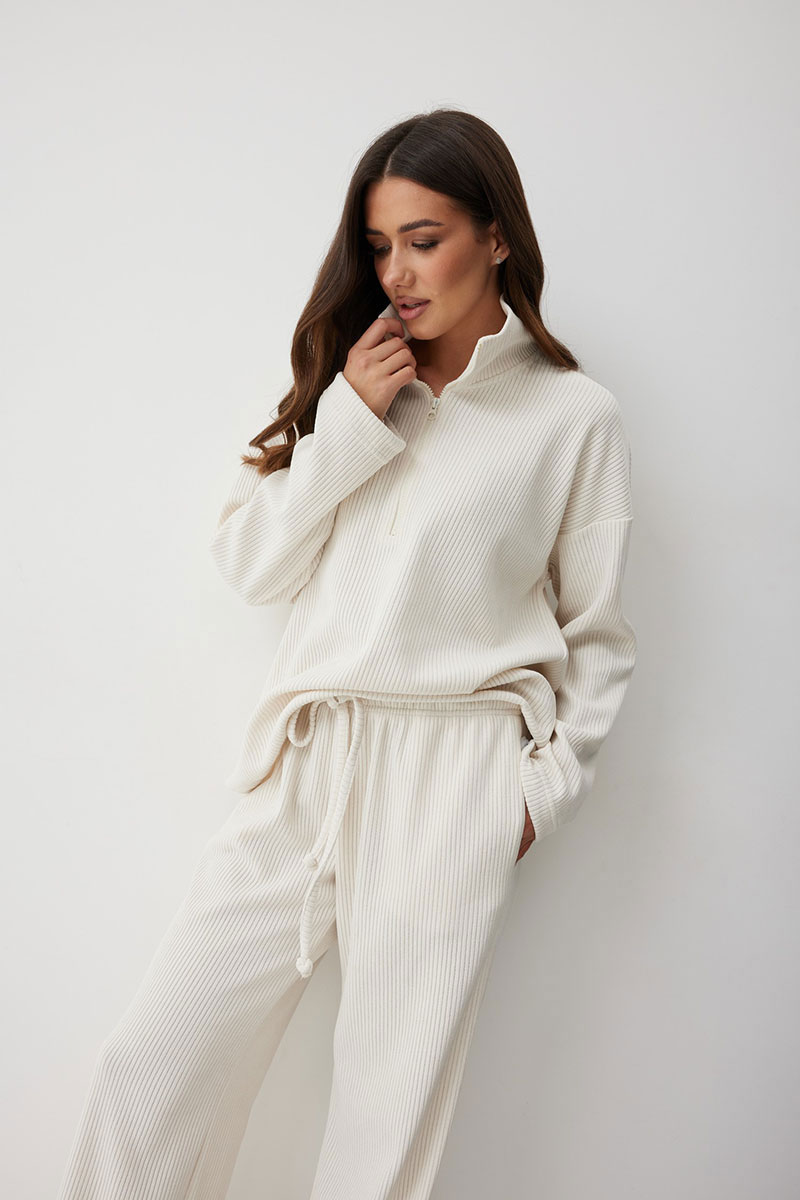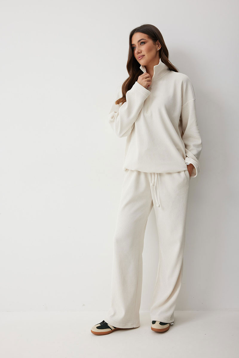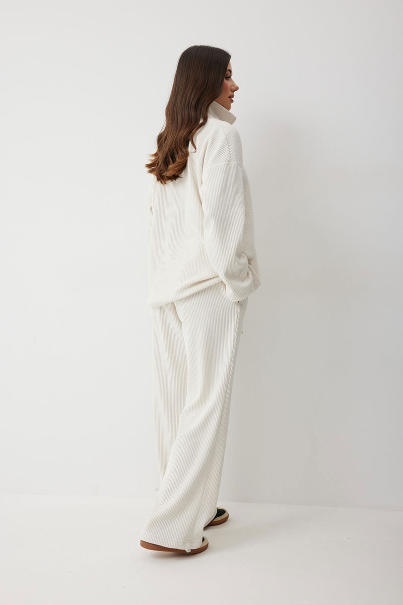 Женские брюки в актуальном спортивном стиле. Модель выполнена из мягкого трикотажного полотна с широким рубчиком, что добавляет фактурности и мягкости. Свободный силуэт гарантирует максимальный комфорт и непринужденный вид.