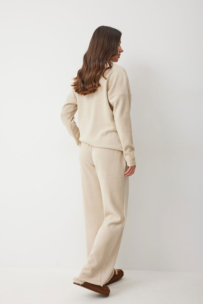 Женские брюки в актуальном спортивном стиле. Модель выполнена из мягкого трикотажного полотна с рубчиком, что добавляет фактурности и мягкости. Свободный силуэт гарантирует максимальный комфорт и непринужденный вид.