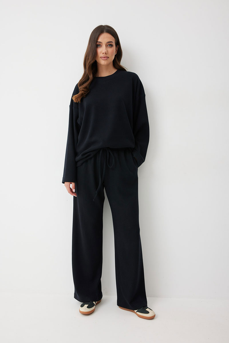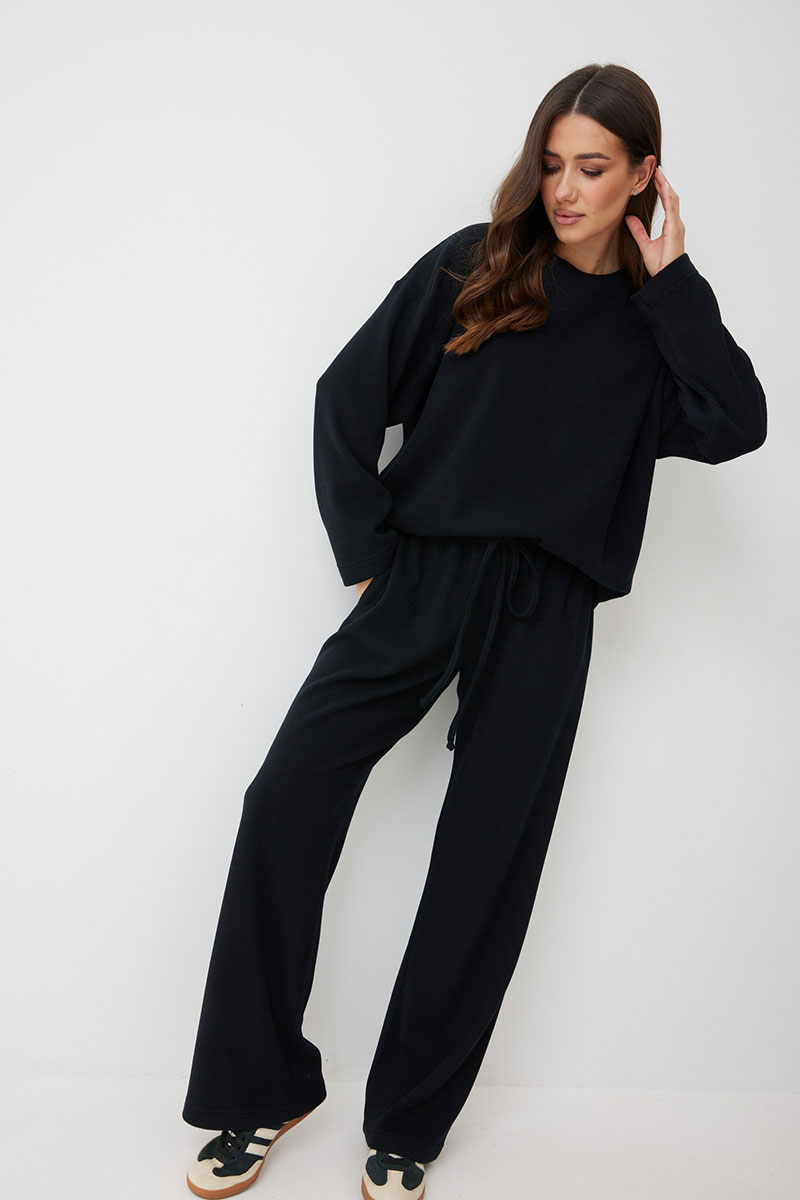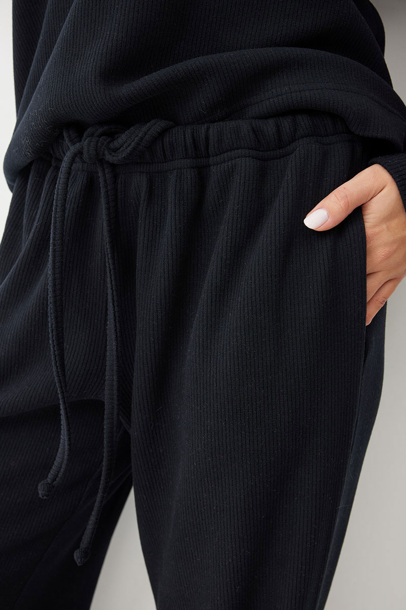 Женские брюки в актуальном спортивном стиле. Модель выполнена из мягкого трикотажного полотна с рубчиком, что добавляет фактурности и мягкости. Свободный силуэт гарантирует максимальный комфорт и непринужденный вид.