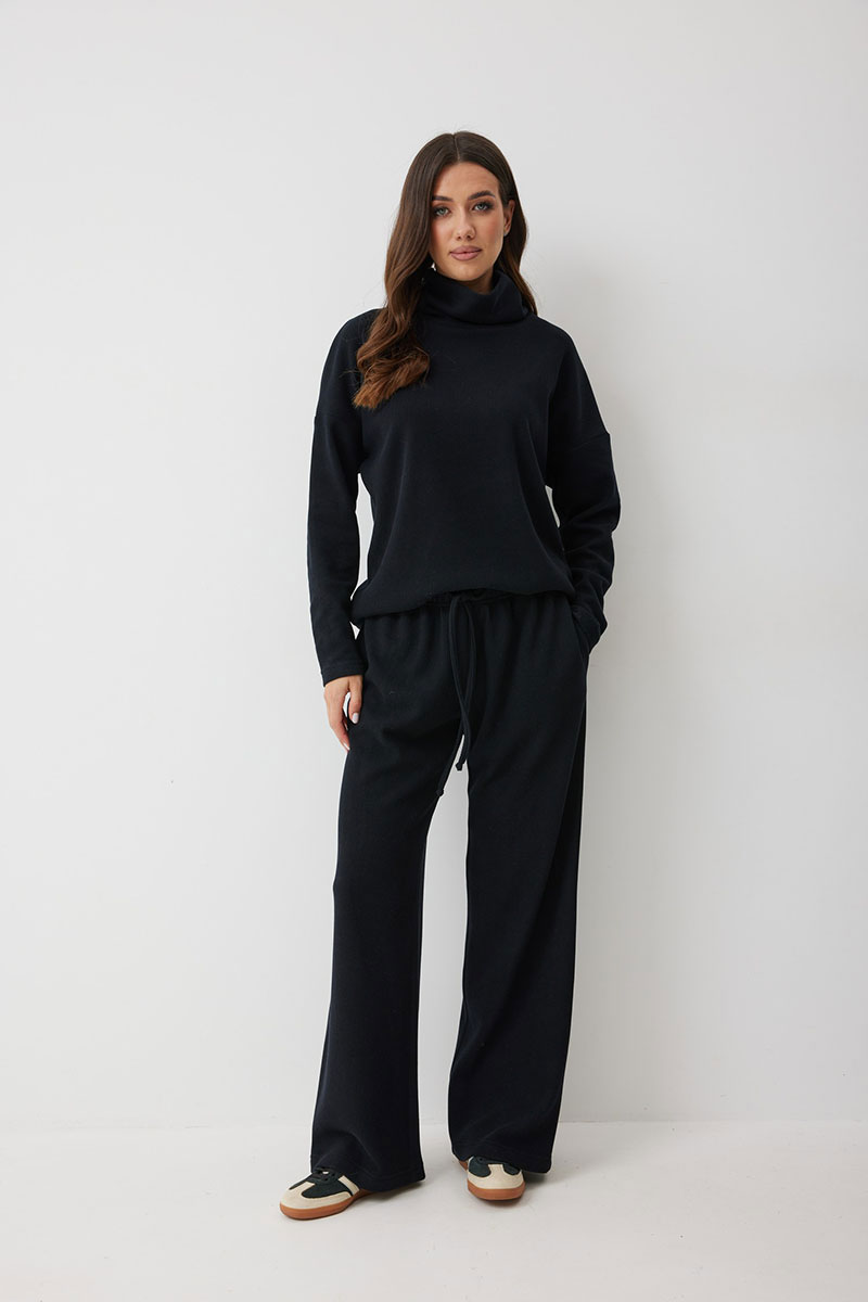 Пояс на резинке обеспечивает идеальную посадку, а дополнительный шнурок из основной ткани позволяет точно отрегулировать объем. Для удобства в боковых швах сделаны функциональные карманы. Эти брюки — идеальное сочетание уюта и актуального спорт-шика.