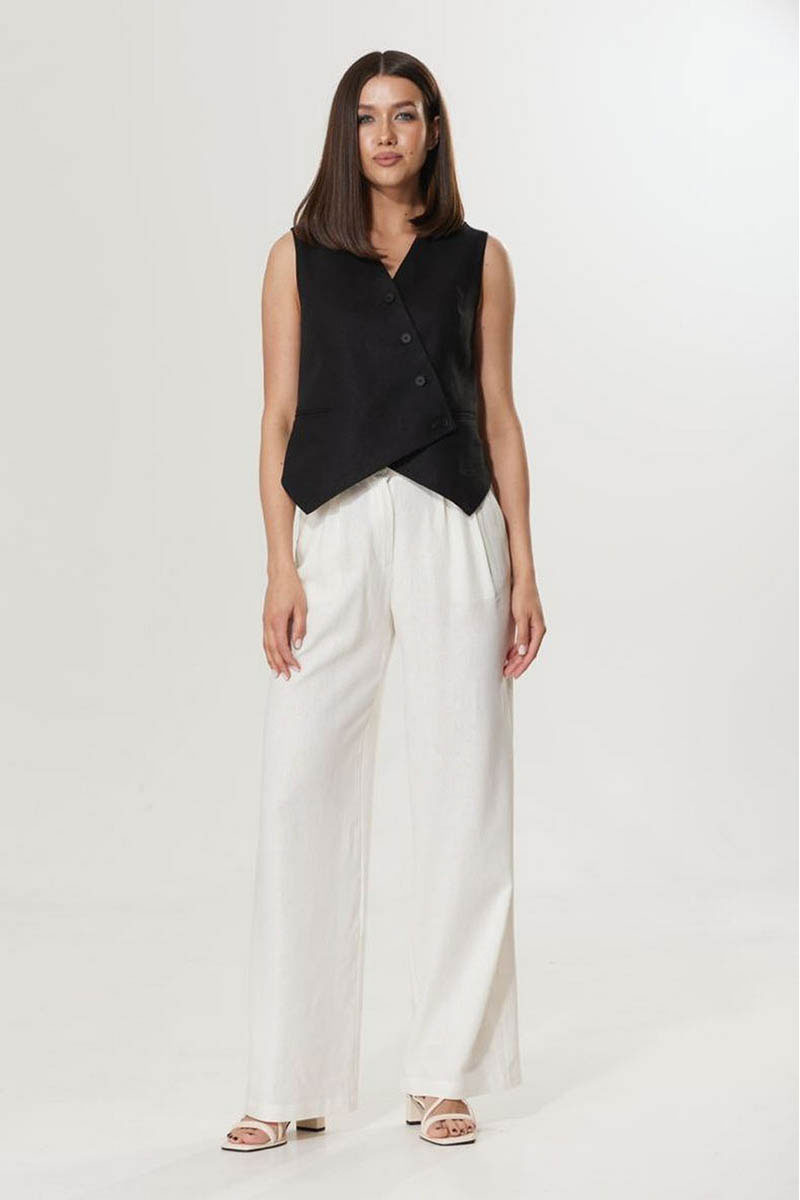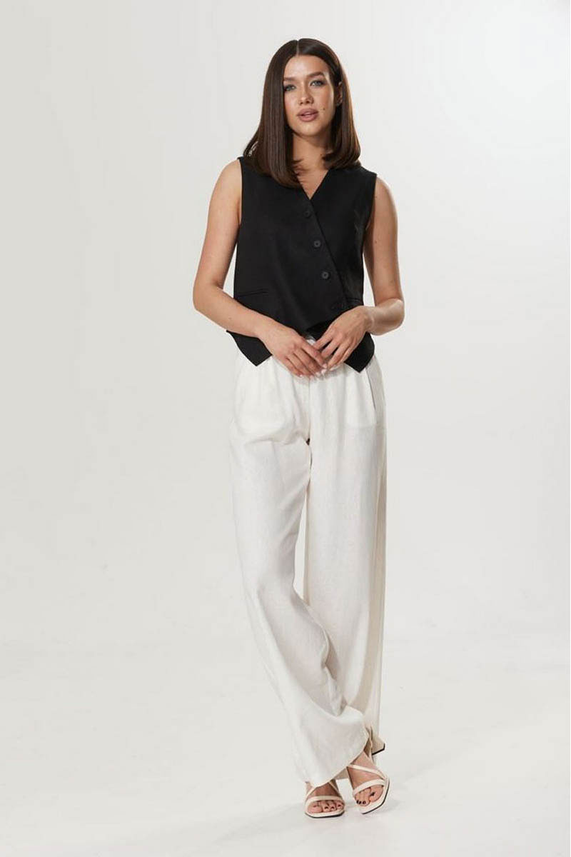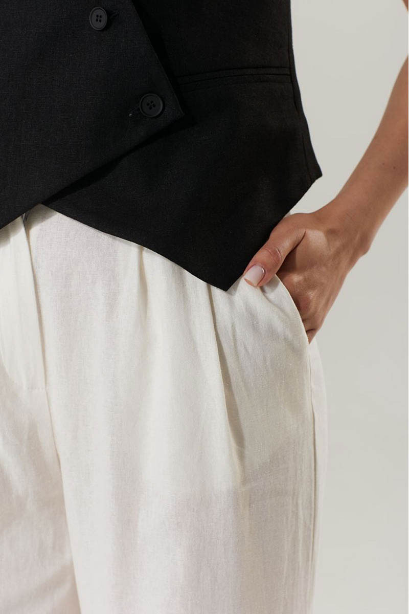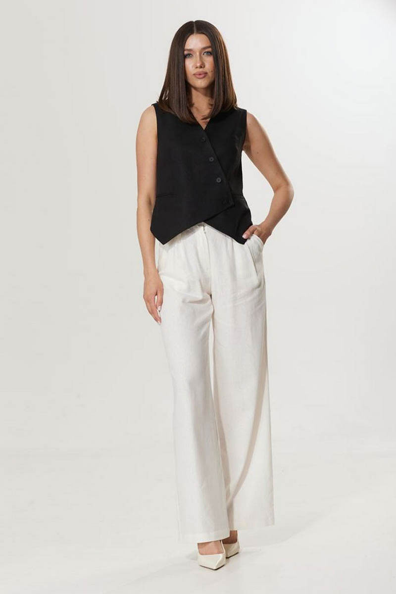 Летние женские брюки из натуральной льняной ткани с добавлением вискозы идеально подходят для жаркой погоды.