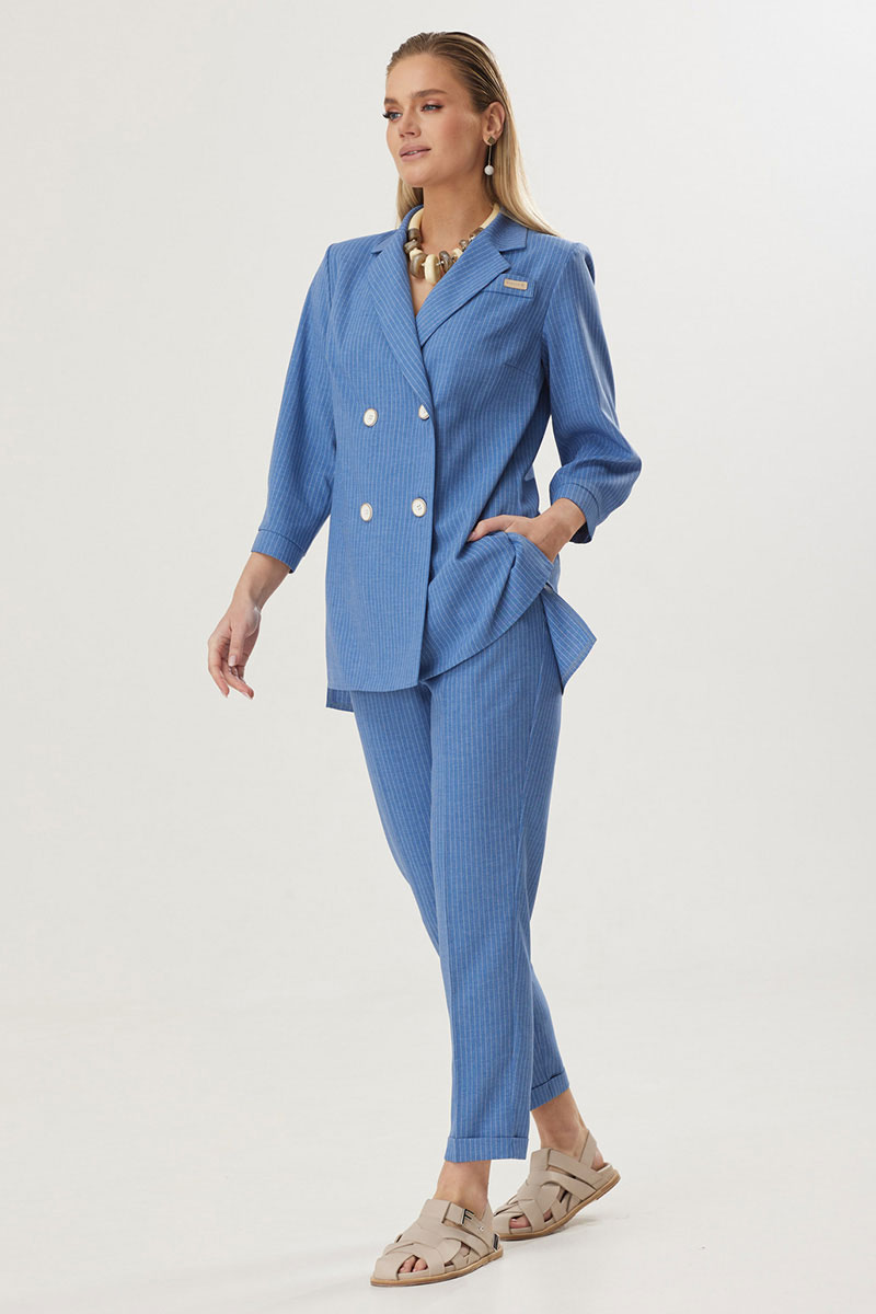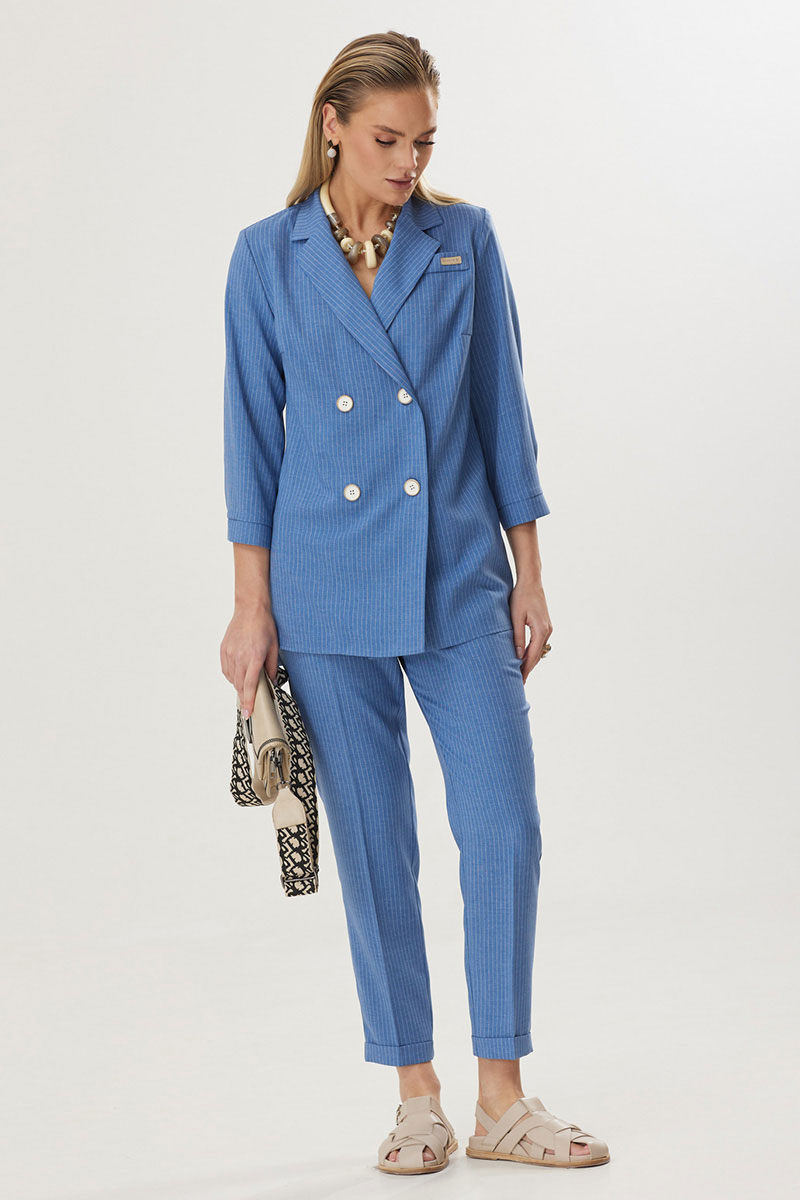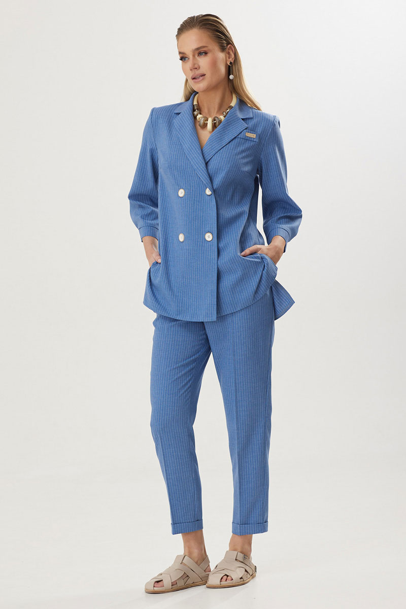 Брюки в полоску легко сочетать и носить практически с любой одеждой из базового гардероба. Например, очень стильно будут смотреться эти брюки, вписанные в деловой образ. Лучше сразу подобрать к ним подходящий верх – это может быть пиджак или модный жакет. Такой лук подойдет для офиса или учебы, так как выглядит очень формально и сдержанно.