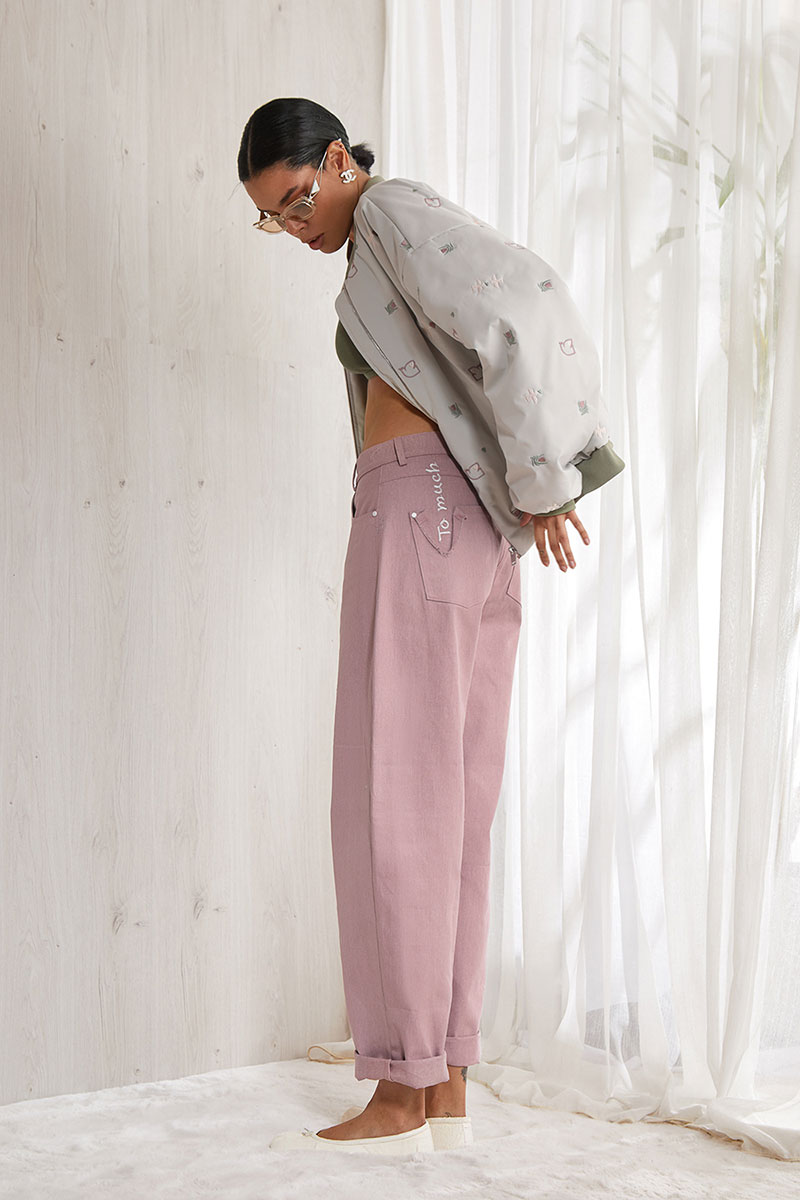Джинсы-багги - свободные мешковатые джинсы, с расслабленным кроем по всей длине, на поясе со шлевками. Низкая посадка. Функциональные карманы спереди. На задних половинках накладные карманы и классическая фигурная кокетка. На левом накладном кармане дизайнерская вышивка.