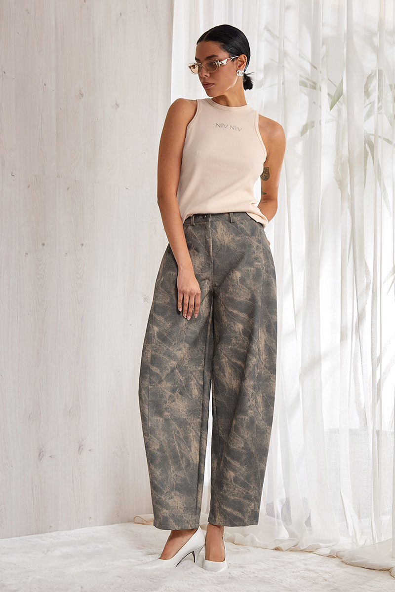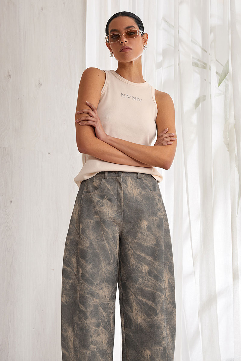 Джинсы О-образные от бедра, укороченные, на поясе со шлевками. Высокая посадка. Спереди и сзади вертикальные подрезы, которые конструктивно делают брюки более объемными. Функциональные карманы спереди. На задних половинках накладные карманы и классическая фигурная кокетка. Эти джинсы отлично сочетаются с футболками “овер”, прямыми топами, свободными рубахами и блузами, а так же прекрасно дополняют образ в сочетании со свободным жакетом в стиле Casual.