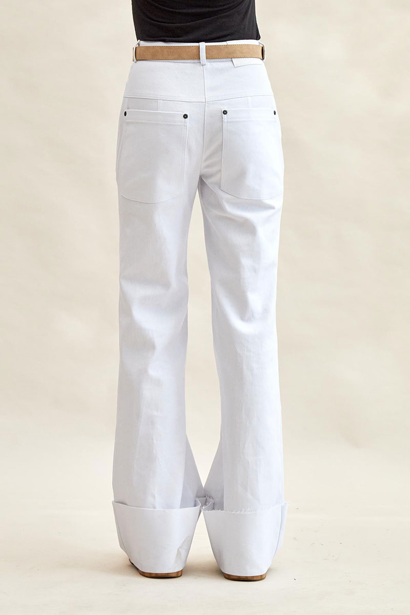 - застежка спереди на молнию и кнопку на притачном поясе;