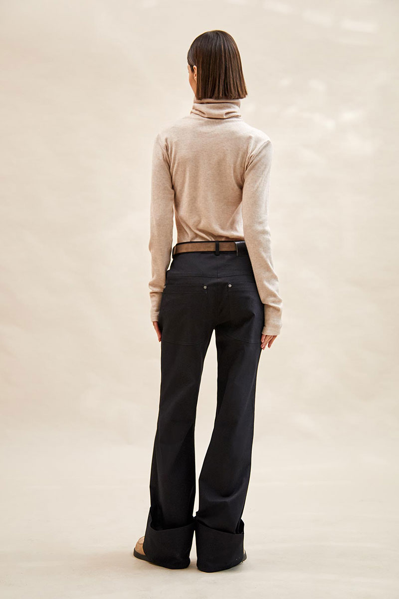 - застежка спереди на молнию и кнопку на притачном поясе;