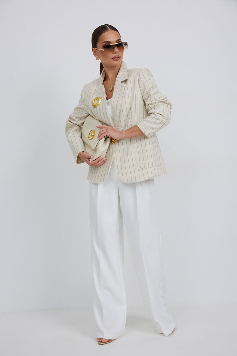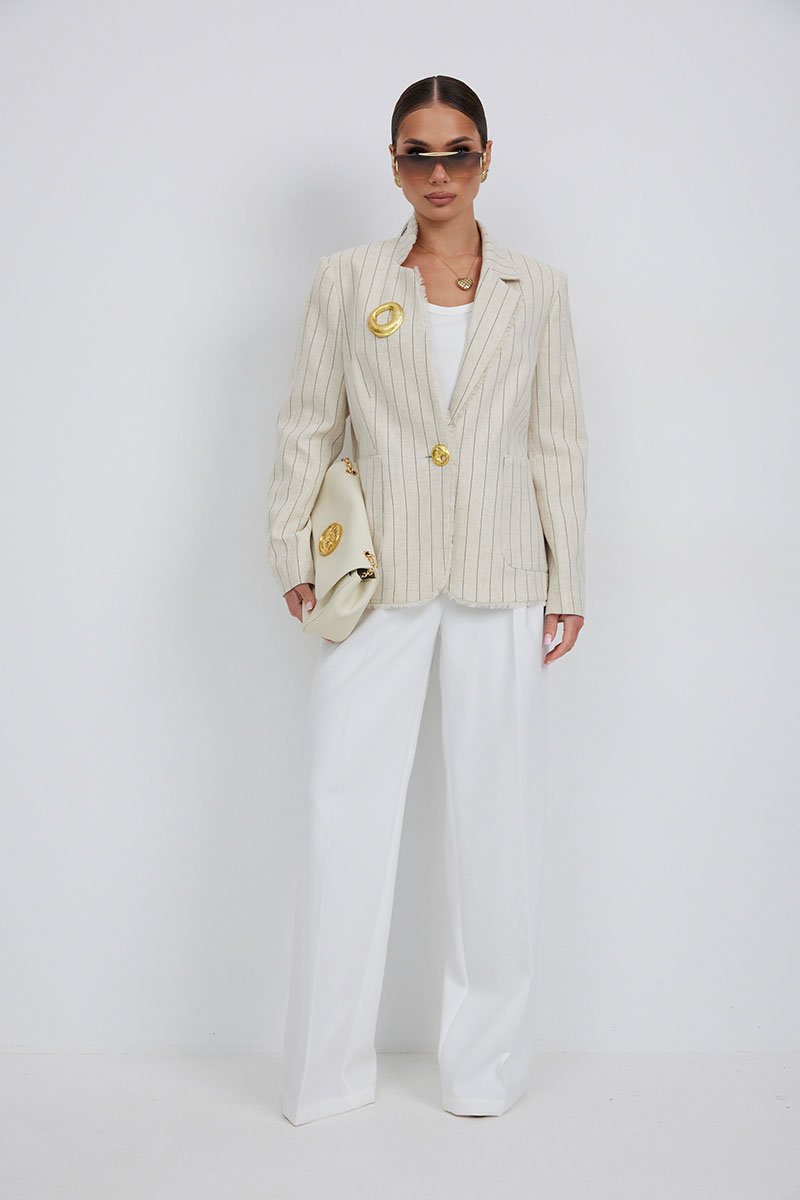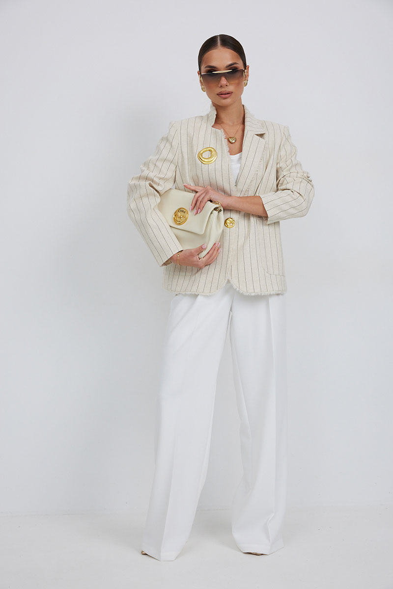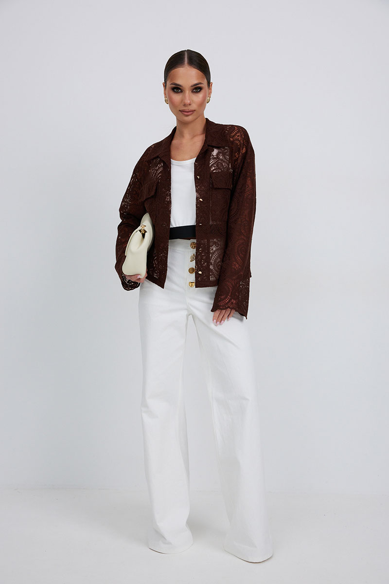 Джинсы с высокой посадкой прямого силуэта. Застежка на петли и декоративные пуговицы. По переду карманы, сзади накладные карманы. По швам контрастная отделочная строчка.