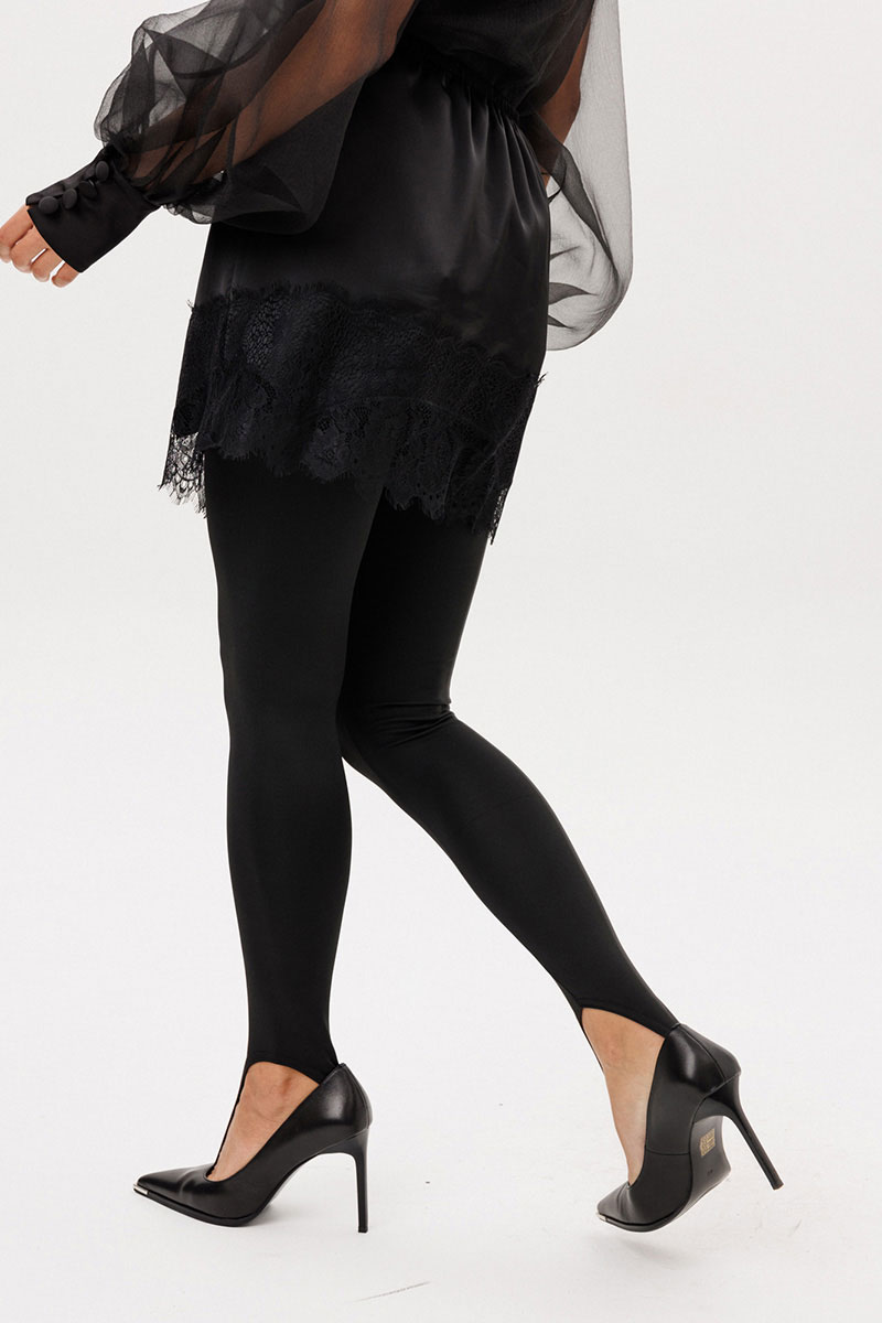 Леггинсы выполнены из эластичного трикотажного полотна. Леггинсы с высокой посадкой, со штрипкой через палец. Подойдут на р.42-44-46.