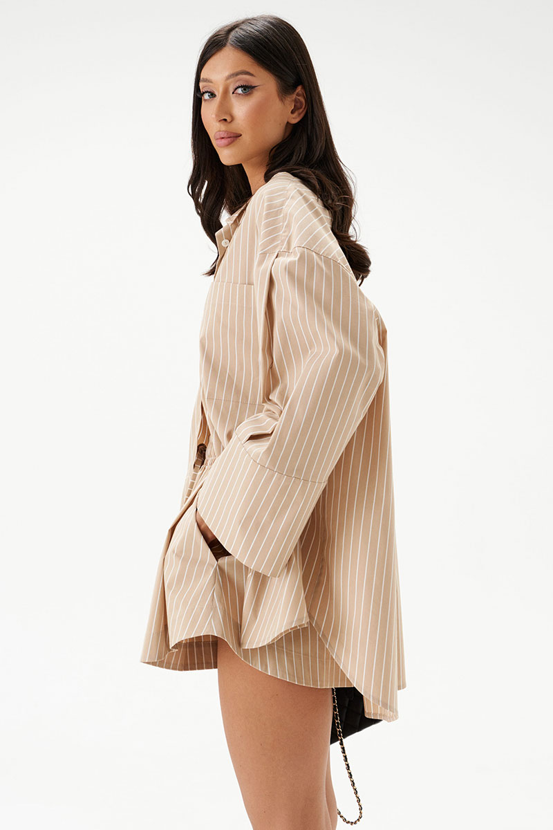 Шорты, выполненные из текстильного полотна. Характеристики: широкие, короткие, пояс притачной, присборен на резинку. Имеет две отделочные строчки по краям, образующие кулису, в которую продет шнур-завязка. В боковых швах карманы с отрезным бочком. Низ обработан в подгибку с закрытым срезом.