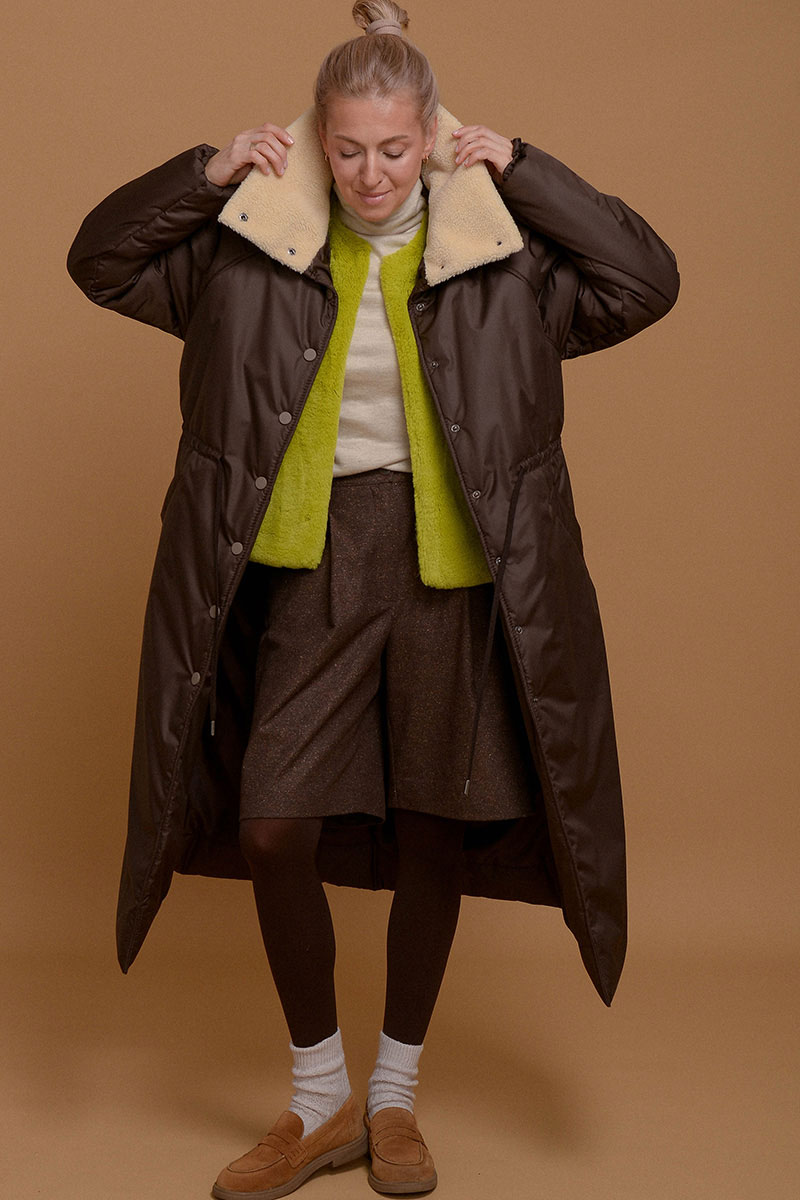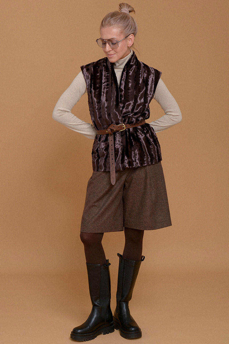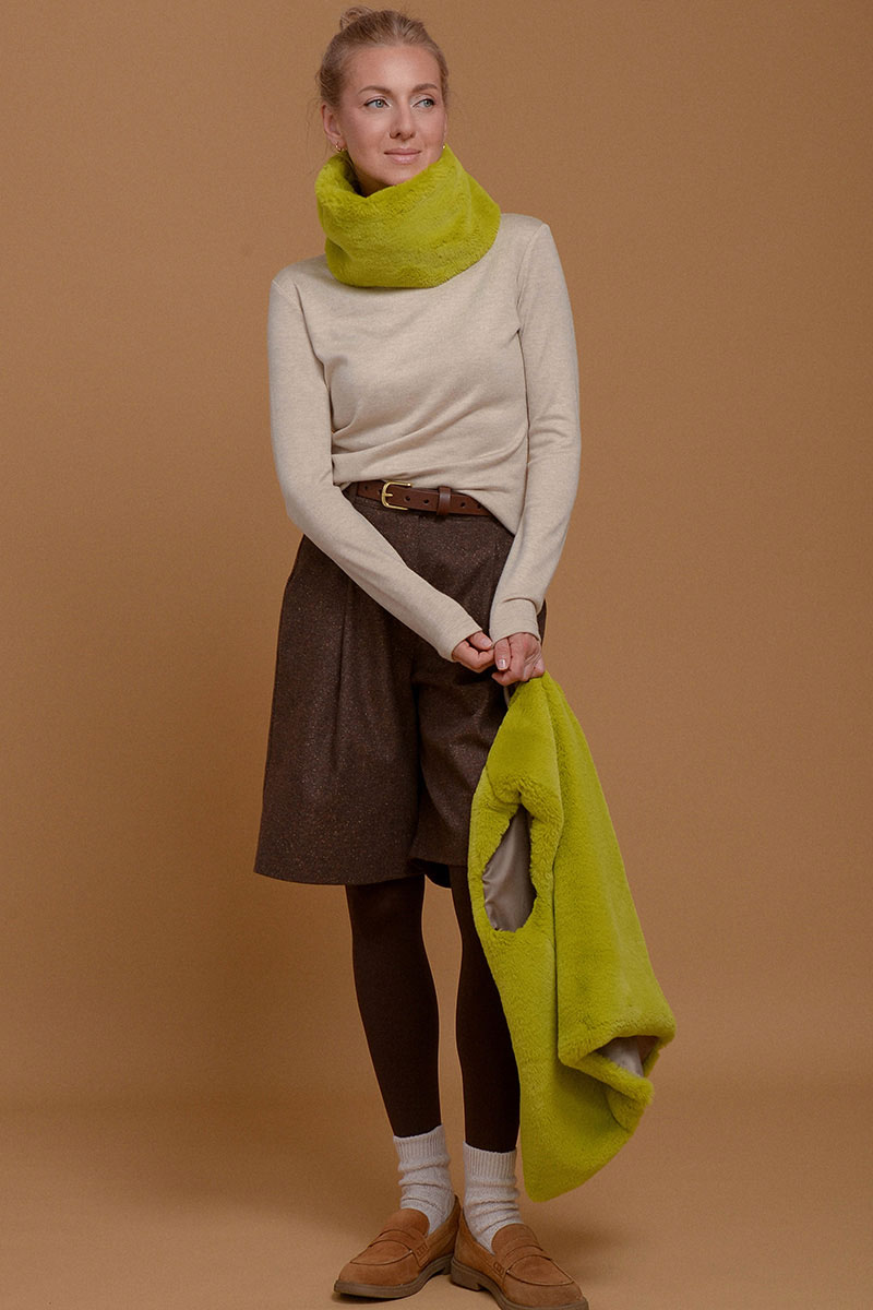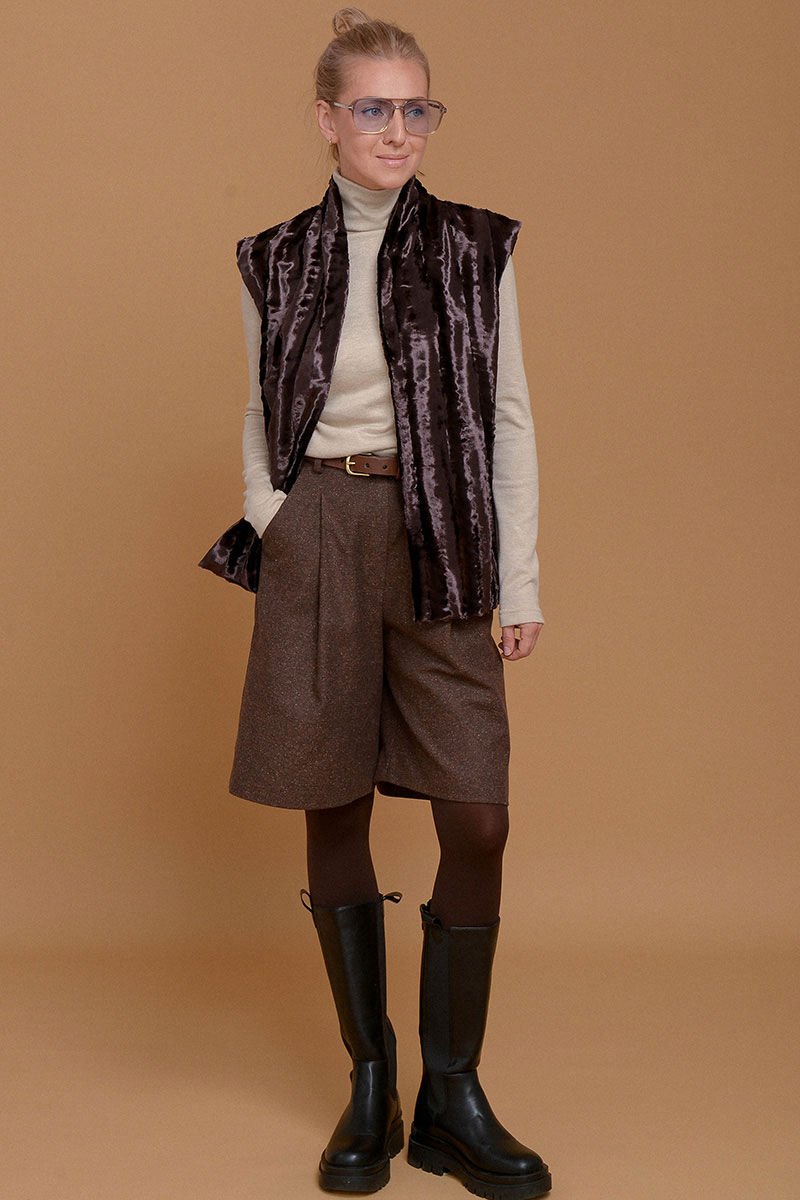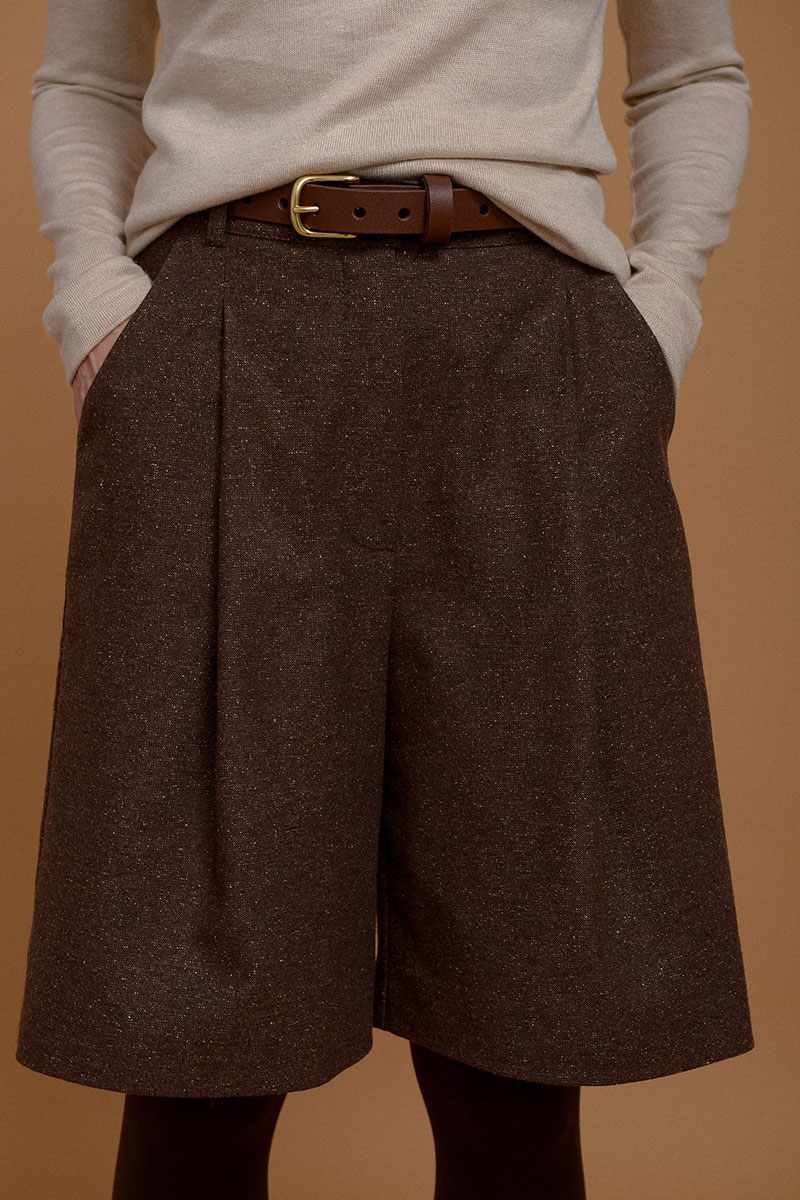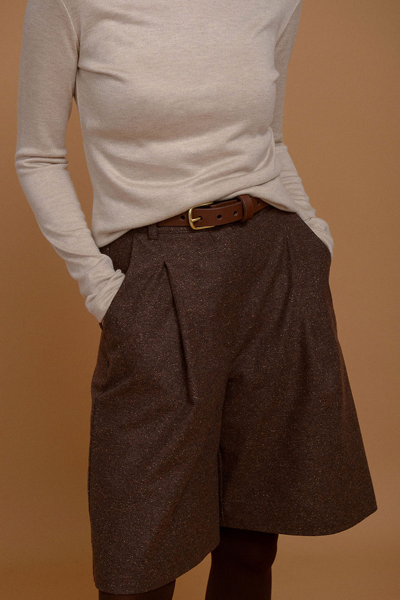 Мы создали шорты, в которых будет тепло и красиво даже зимой. Премиальная итальянская шерсть с шелком - ткань отличается своей мягкой ворсистой текстурой, отлично сохраняет тепло. Шорты полностью дополнены подкладочной тканью из комфортного к коже твила. Свободный крой, эластичный пояс, боковые карманы. Идеально сочетаются с утепленным пальто и укороченной курткой из нашей коллекции.
