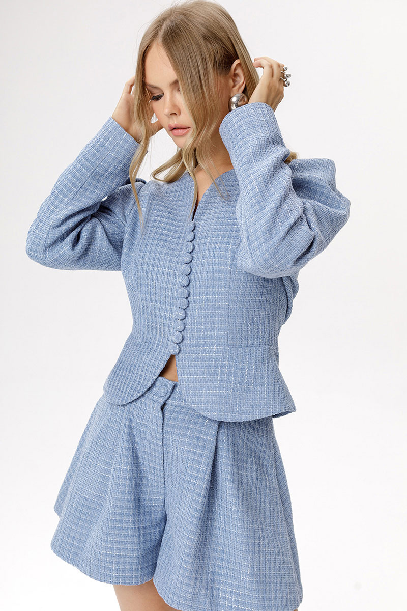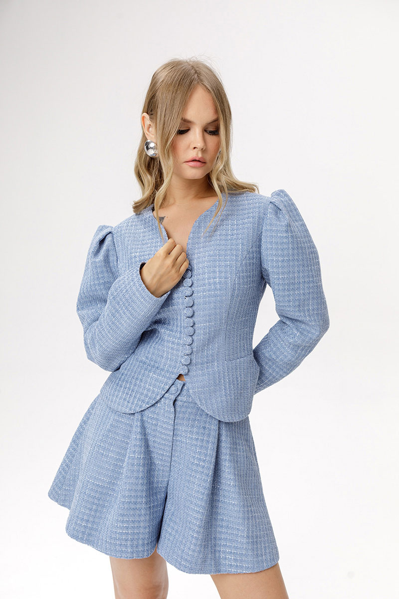 Мини-шорты из фактурной ткани (приобрести жакет с фото можно по арт. 6624).