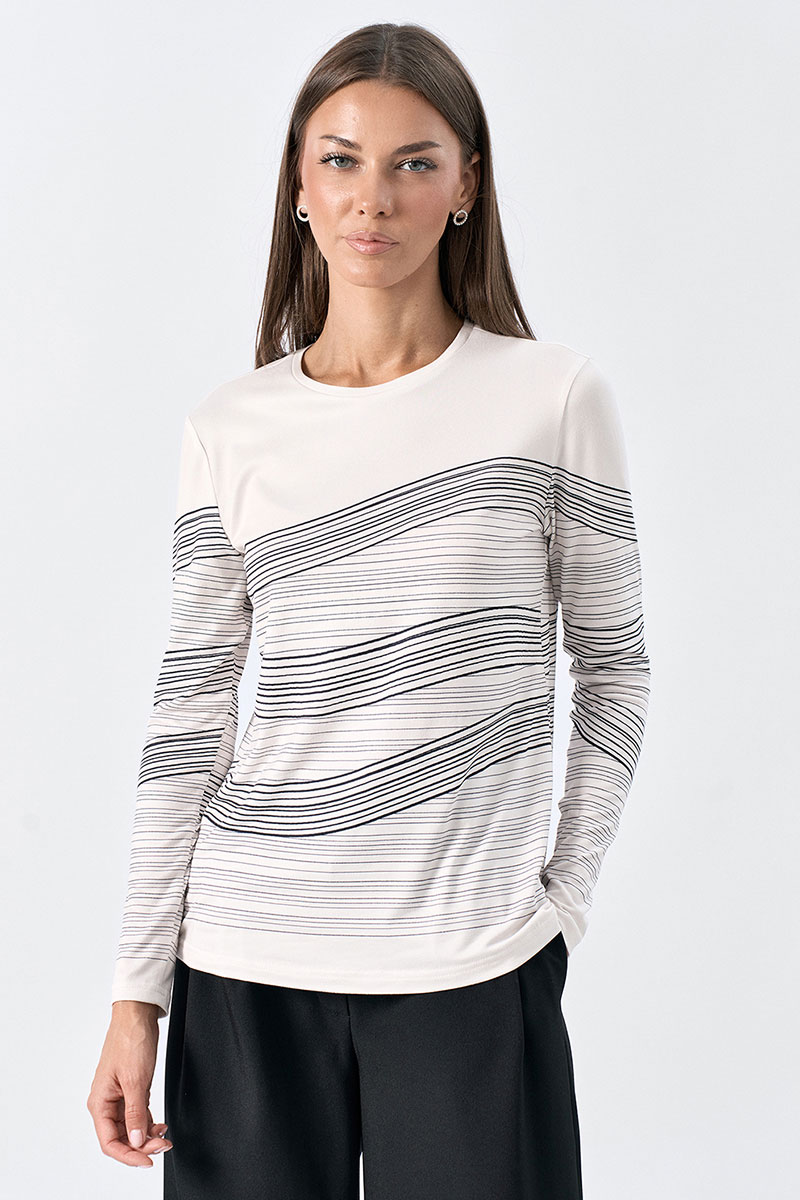 Джемпер женский приталенного силуэта изготовлен из мягкого трикотажного полотна. Горловина круглой формы, рукав длинный, втачной. Возможно отличие фотографии по оттенку, связанное с разной цветопередачей монитора.