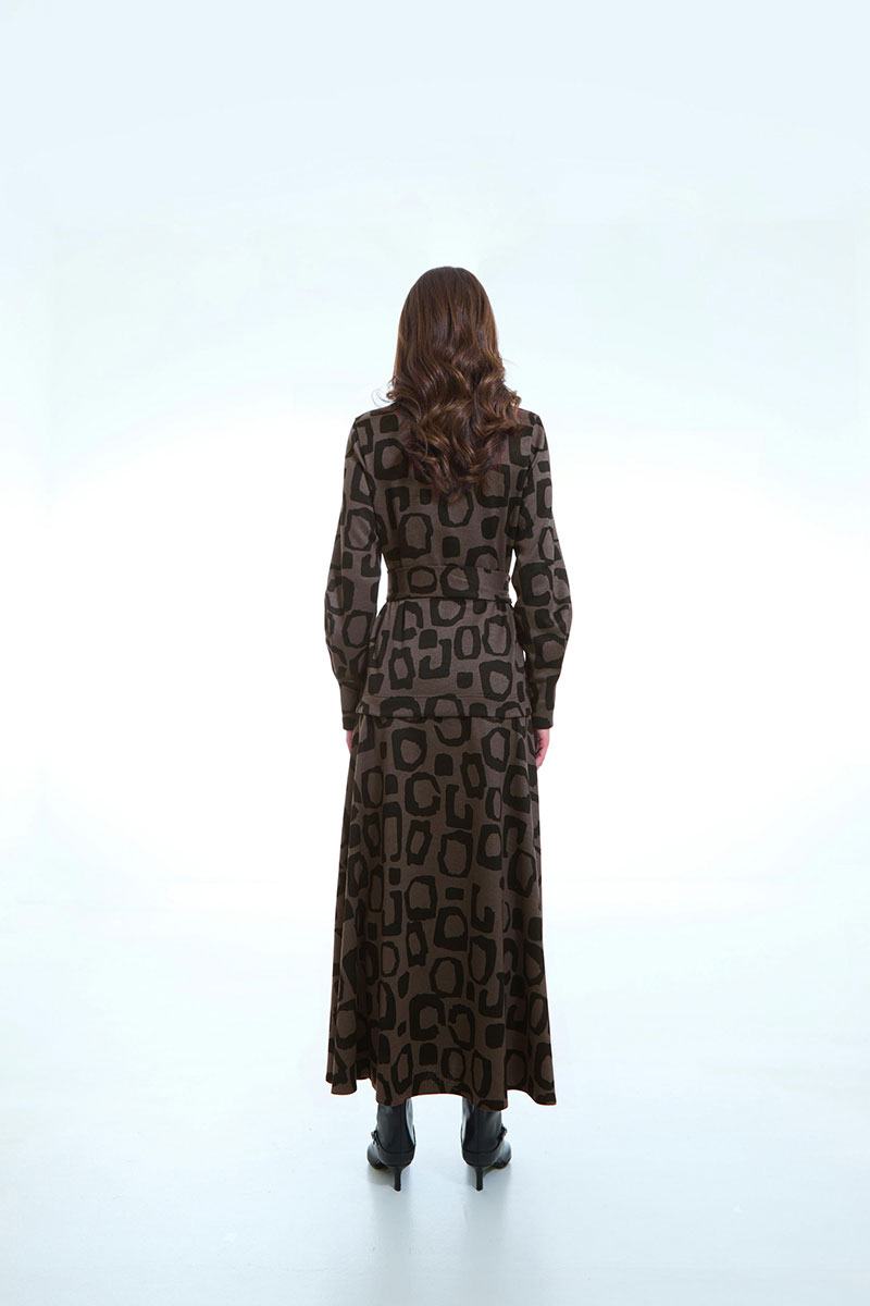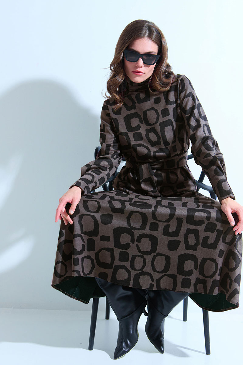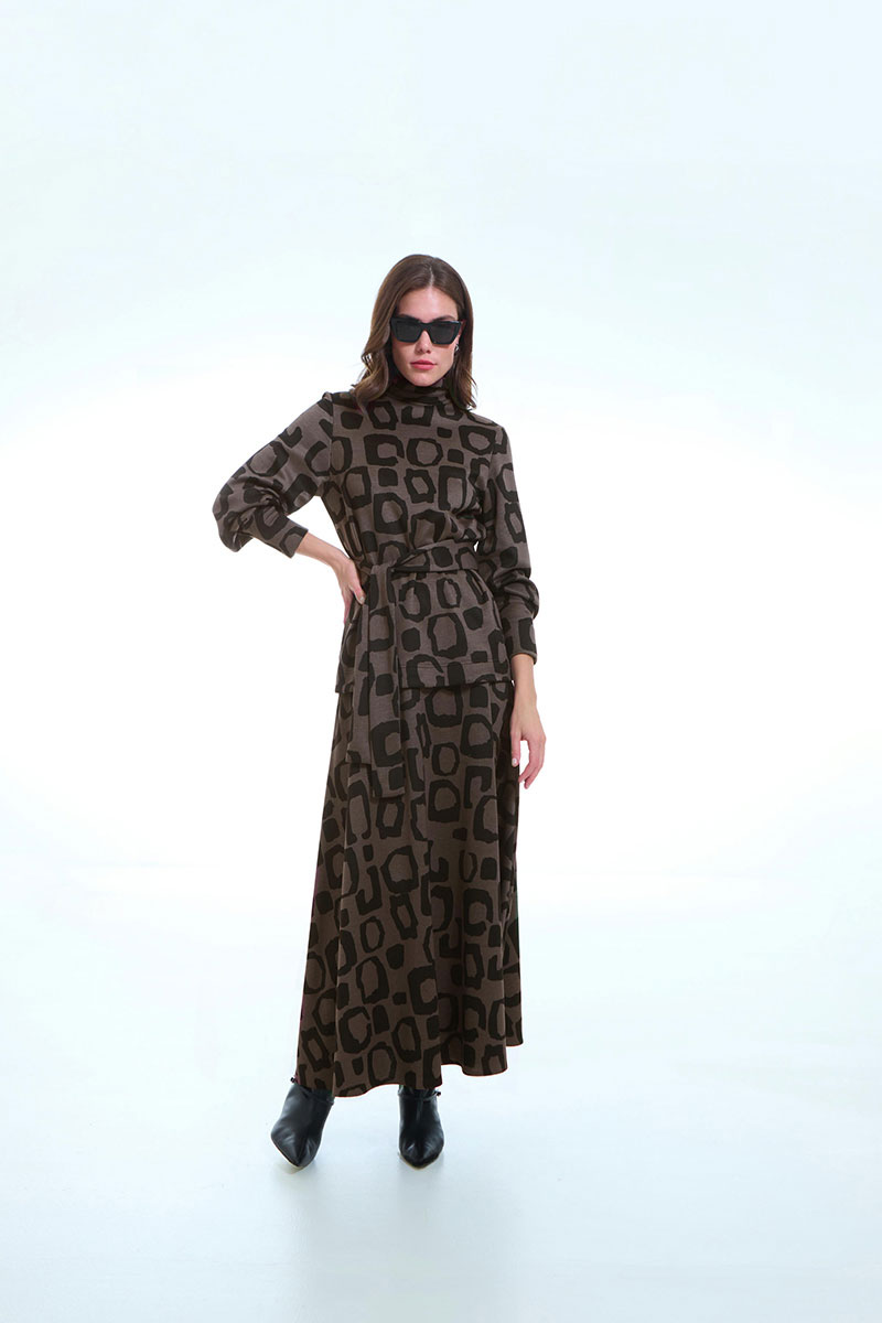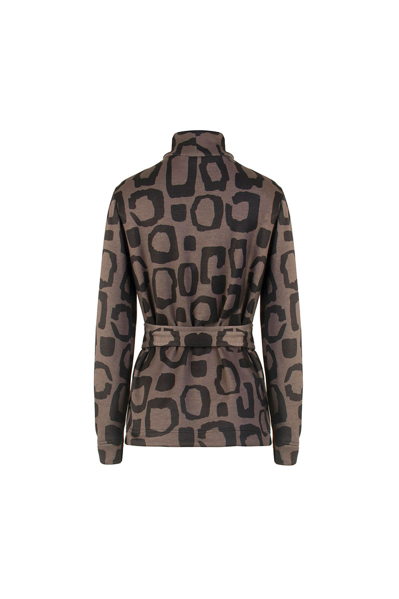 Джемпер женский прямого силуэта с длинными рукавами, воротник - стойка. В нижней части рукава складка. В комплекте съемный пояс.