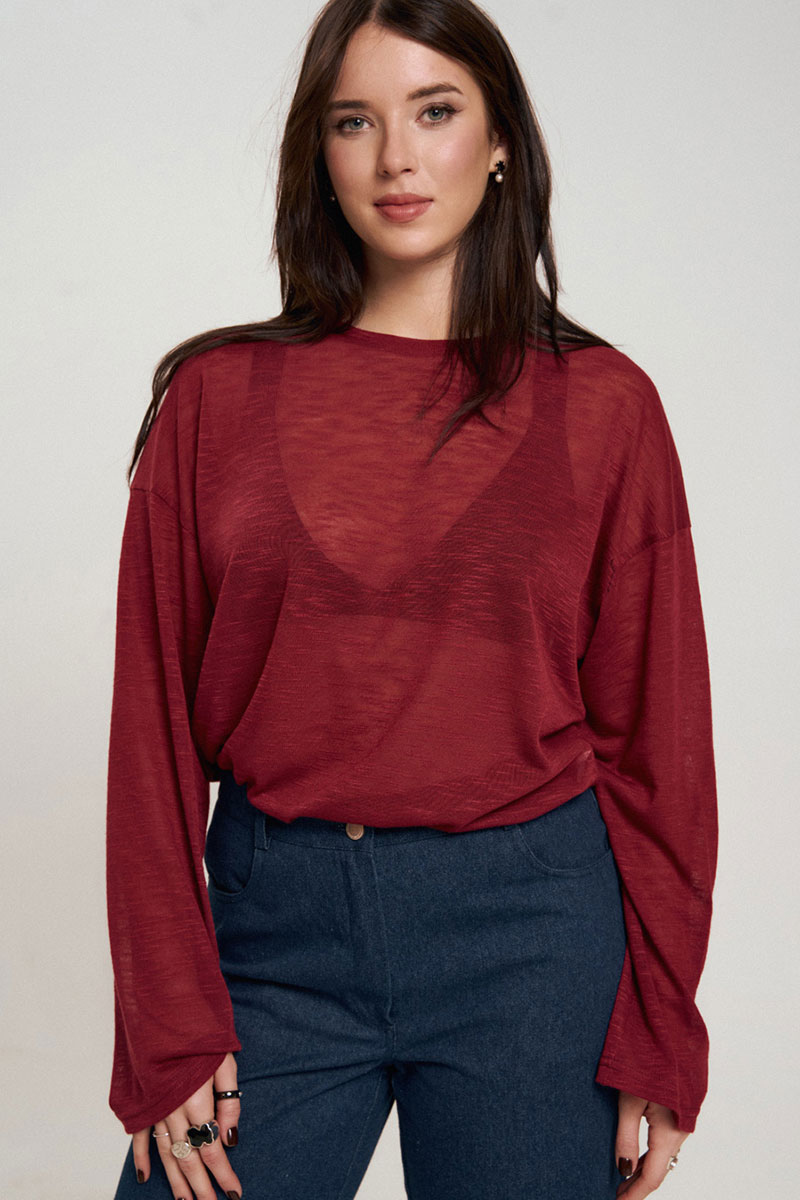 Джемпер молодежный из трикотажного полотна со спущенной линией плеча, и рукавом длиной до запястья и расширением к линии низа,горловина округлой формы.