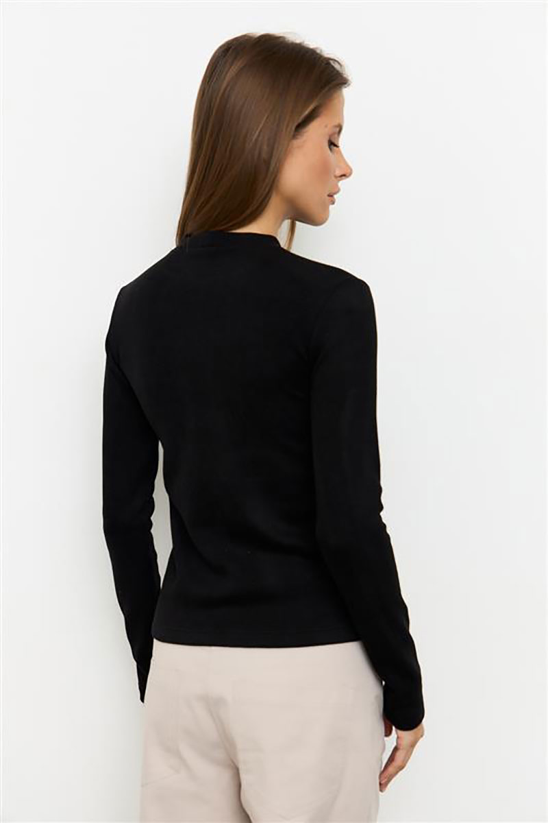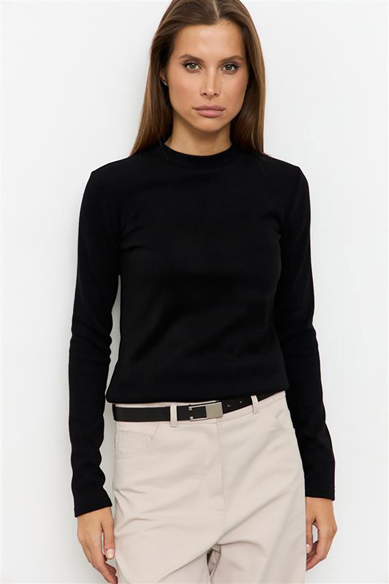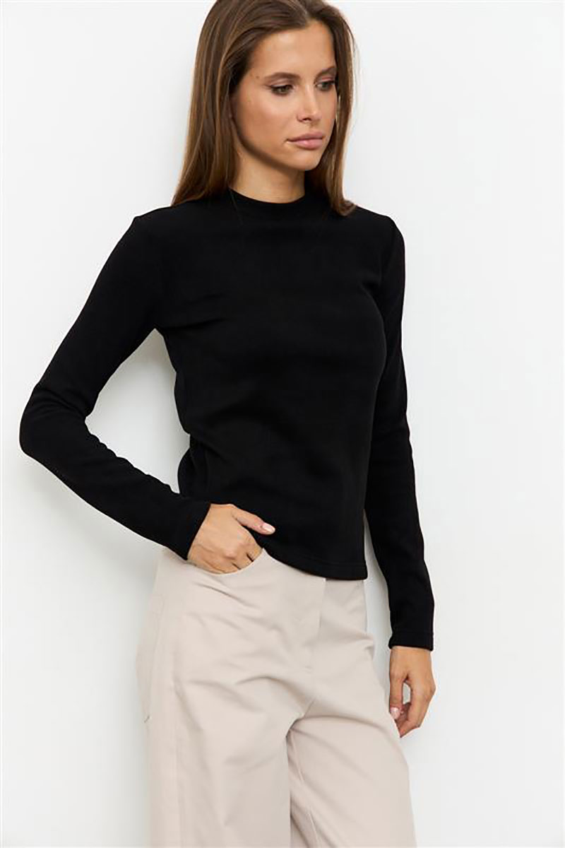 Джемпер из трикотажного полотна в рубчик средней плотности.