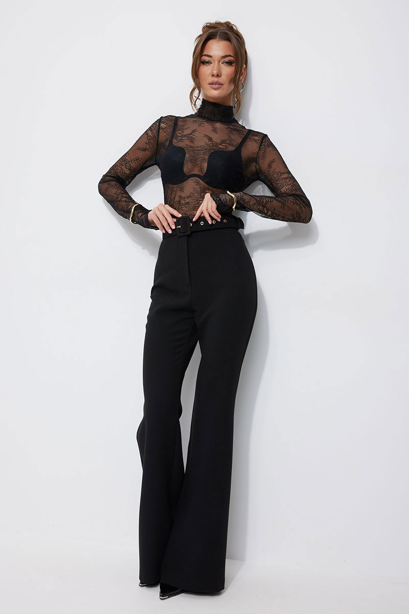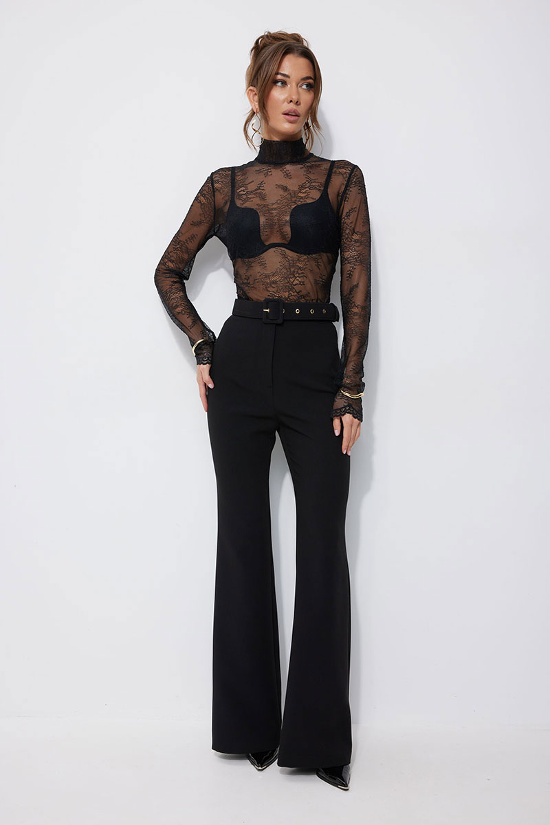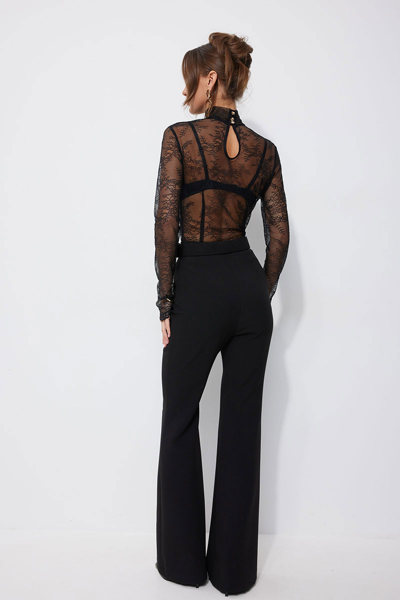 Блузка полуприлегающего силуэта из кружева. Горловина –стойка, на спинке застежка на петли и пуговицы и фигурный вырез. Рукав втачной. На спинке талиевые вытачки. Обращаем ваше внимание, что фурнитура может отличаться от фото.