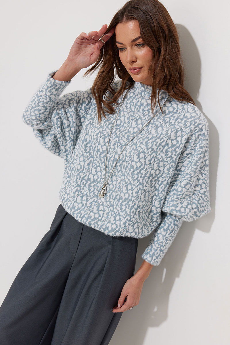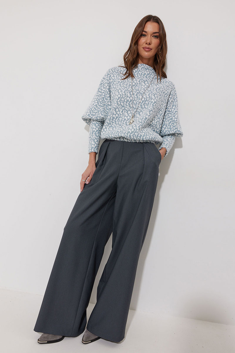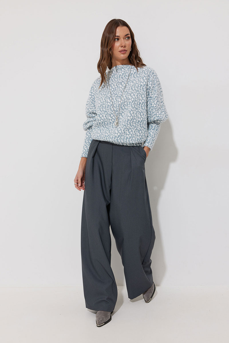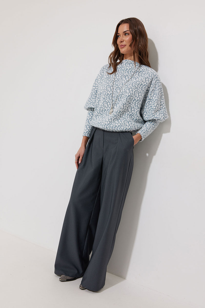 Джемпер прямого силуэта из комфортного трикотажного полотна. Горловина – цельнокроеная стойка. Рукав цельнокроеный, по низу на манжете. По низу джемпера – притачная планка.