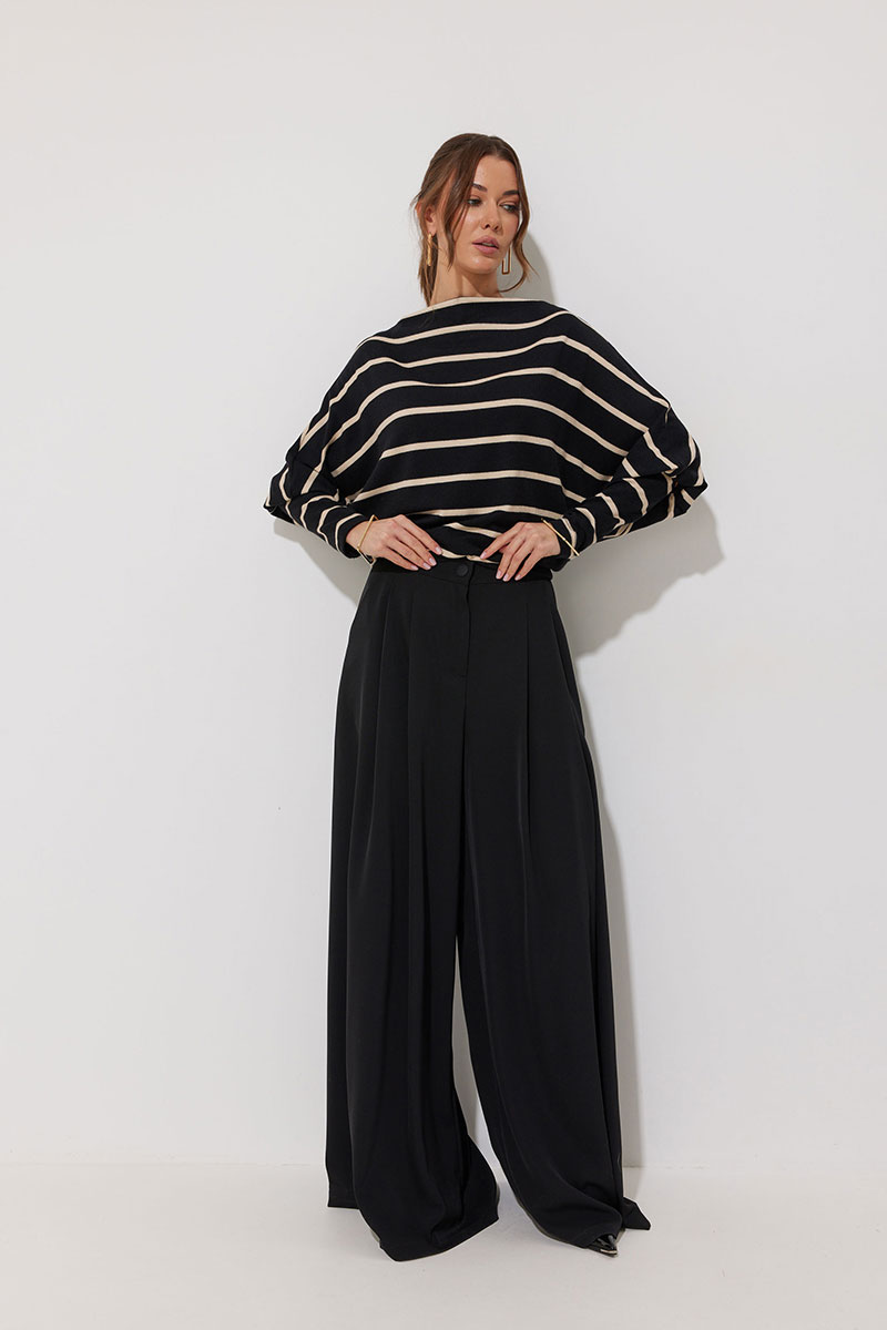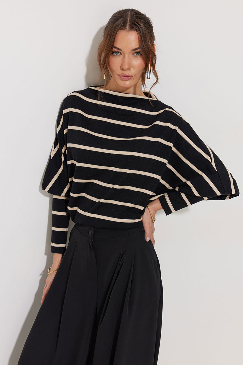 Джемпер полуприлегающего силуэта из трикотажного полотна. Горловина - цельнокроеная стойка. Рукав цельнокроеный, с подрезом ниже локтя и узкой длинной манжетой. По низу джемпера – притачная планка.
