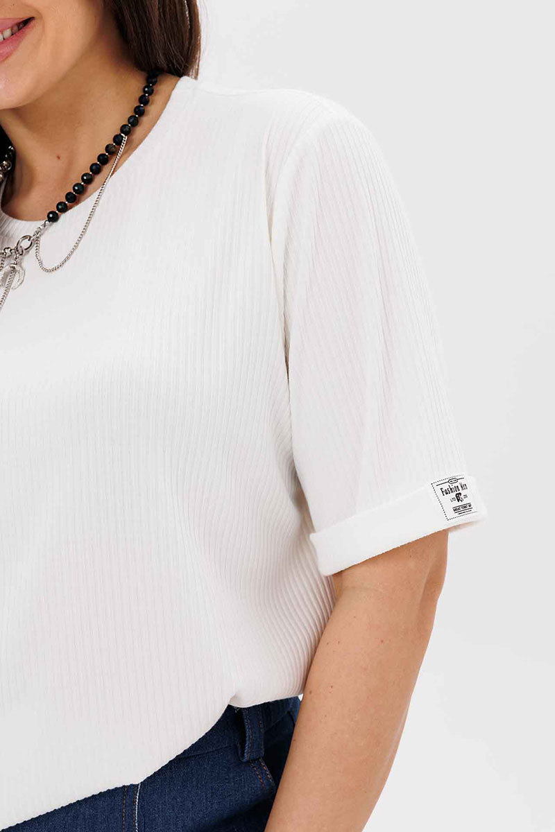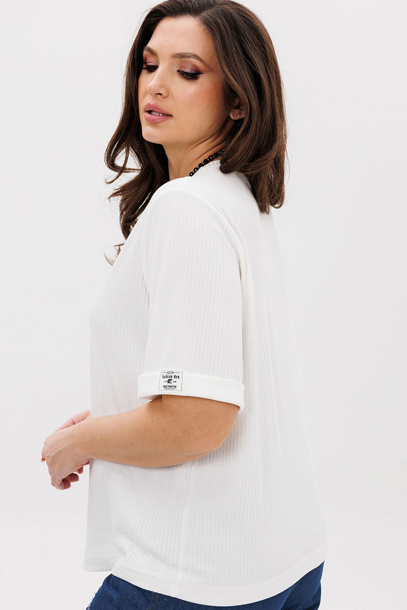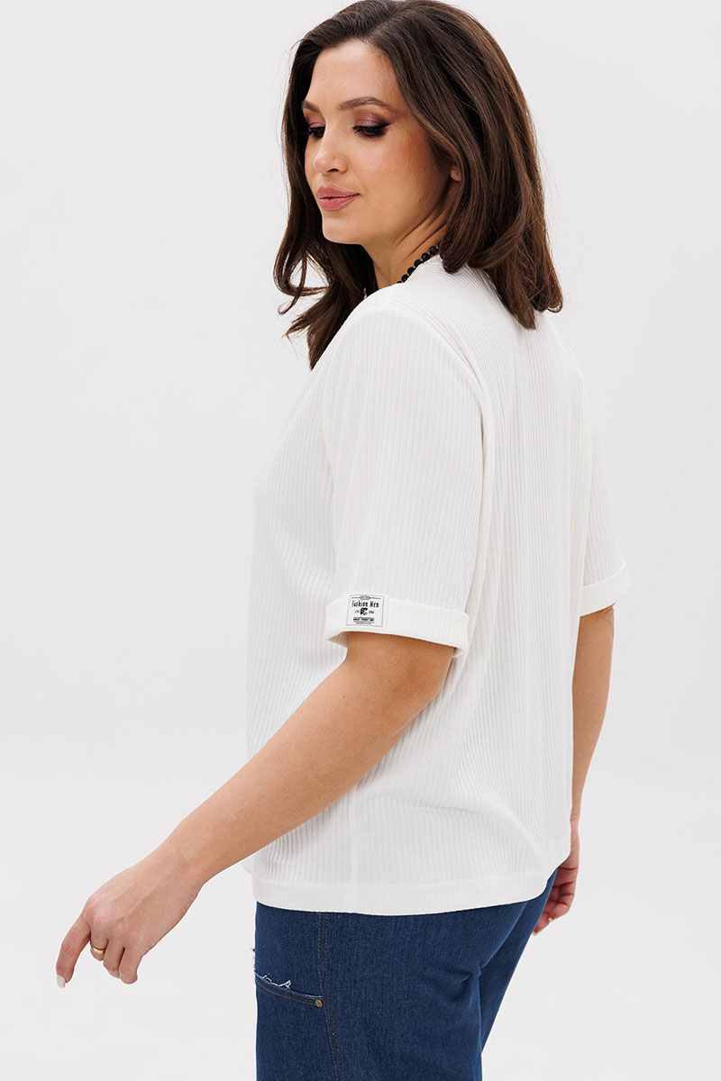 Джемпер женский свободного силуэта, рукав до локтя, одношовные, втачные, с манжетой по низу. Горловина обработана планкой.