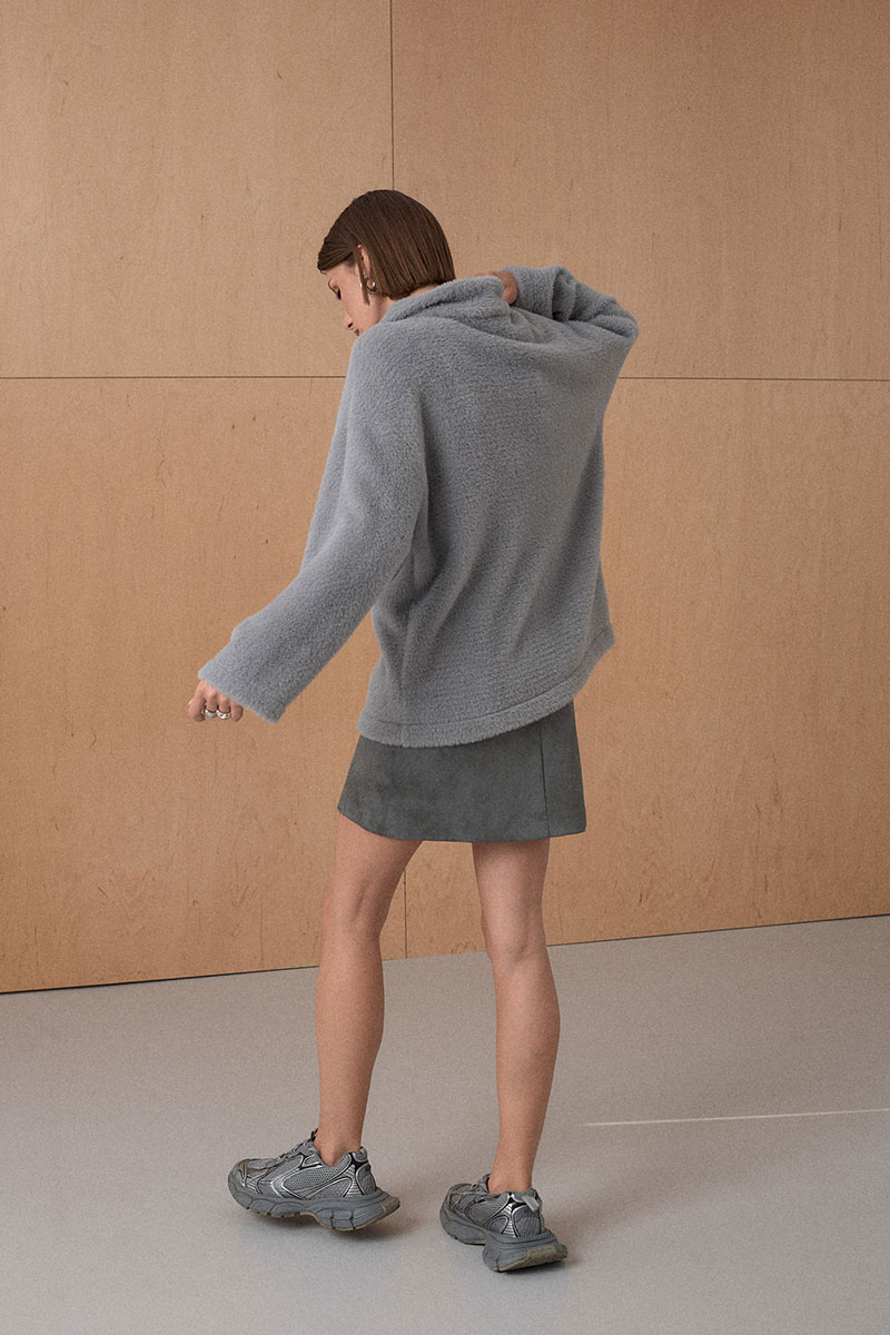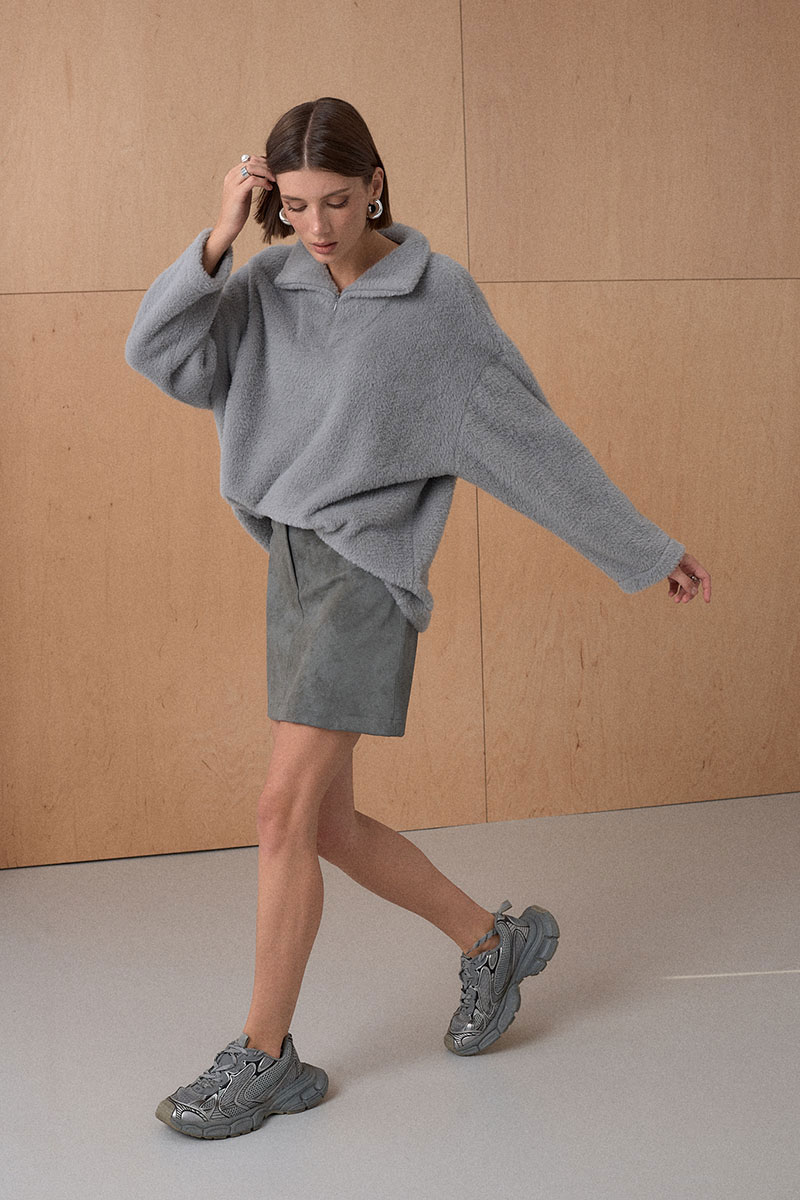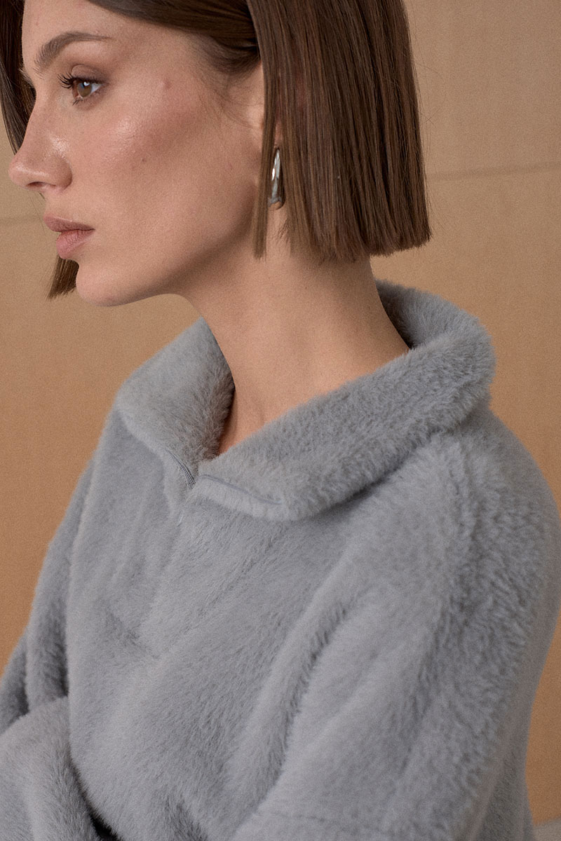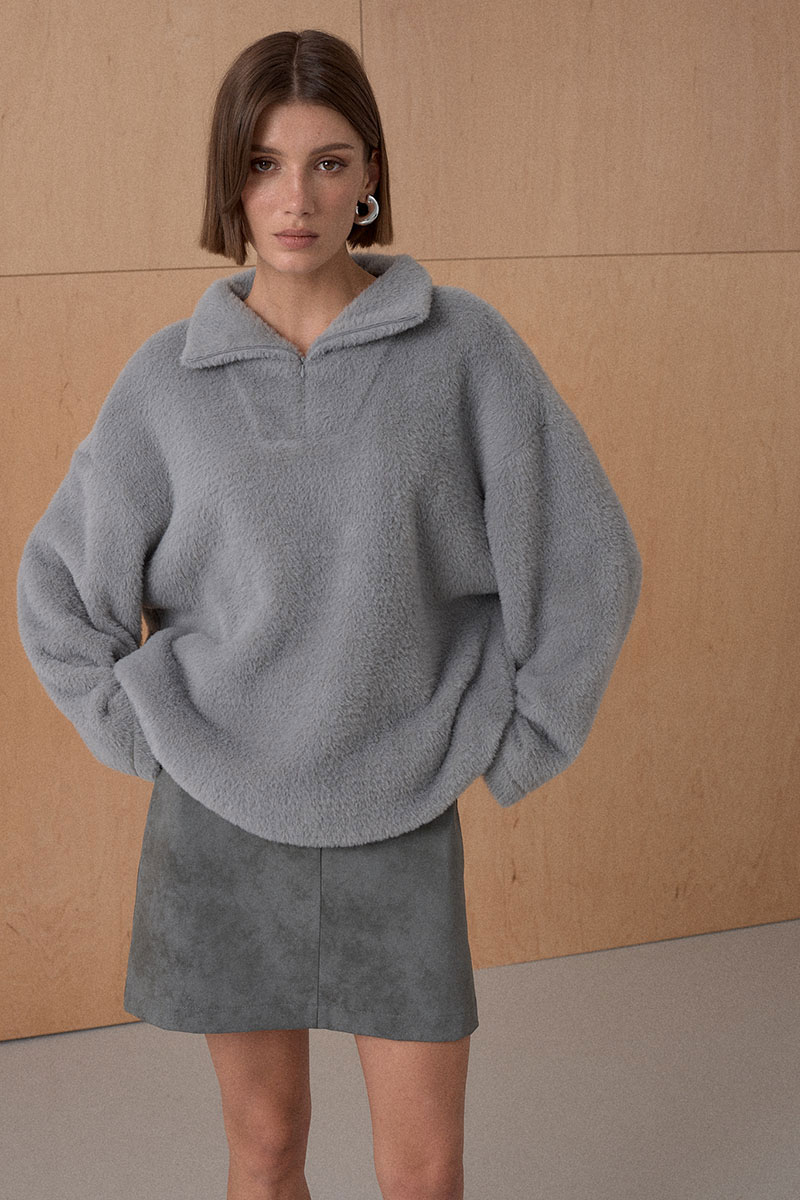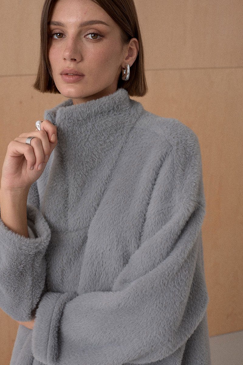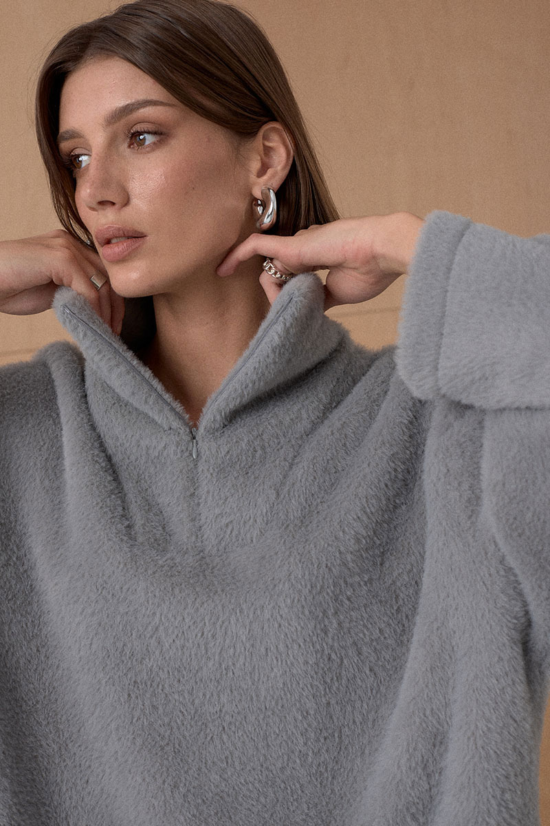 Джемпер из мягкого фактурного трикотажного полотна. Джемпер с высоким воротником на потайной молнии.