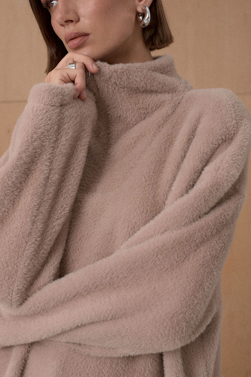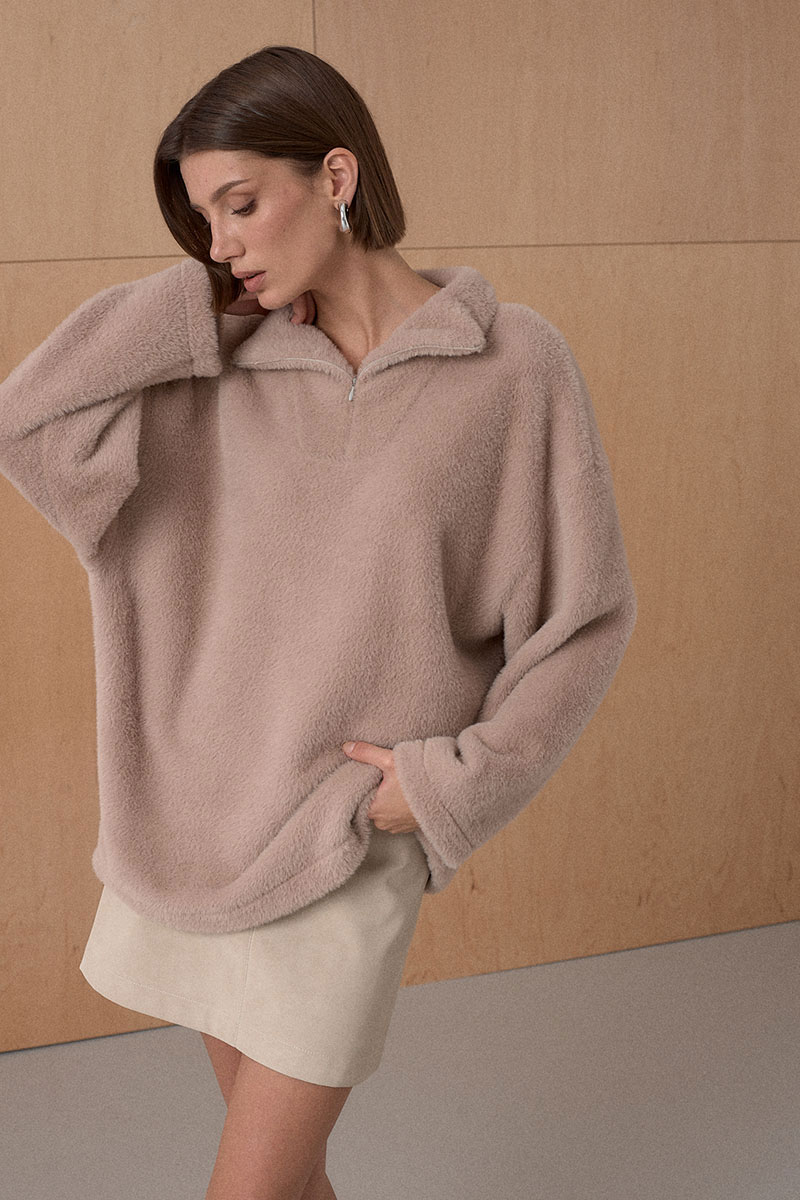 Джемпер из мягкого фактурного трикотажного полотна. Джемпер с высоким воротником на потайной молнии.