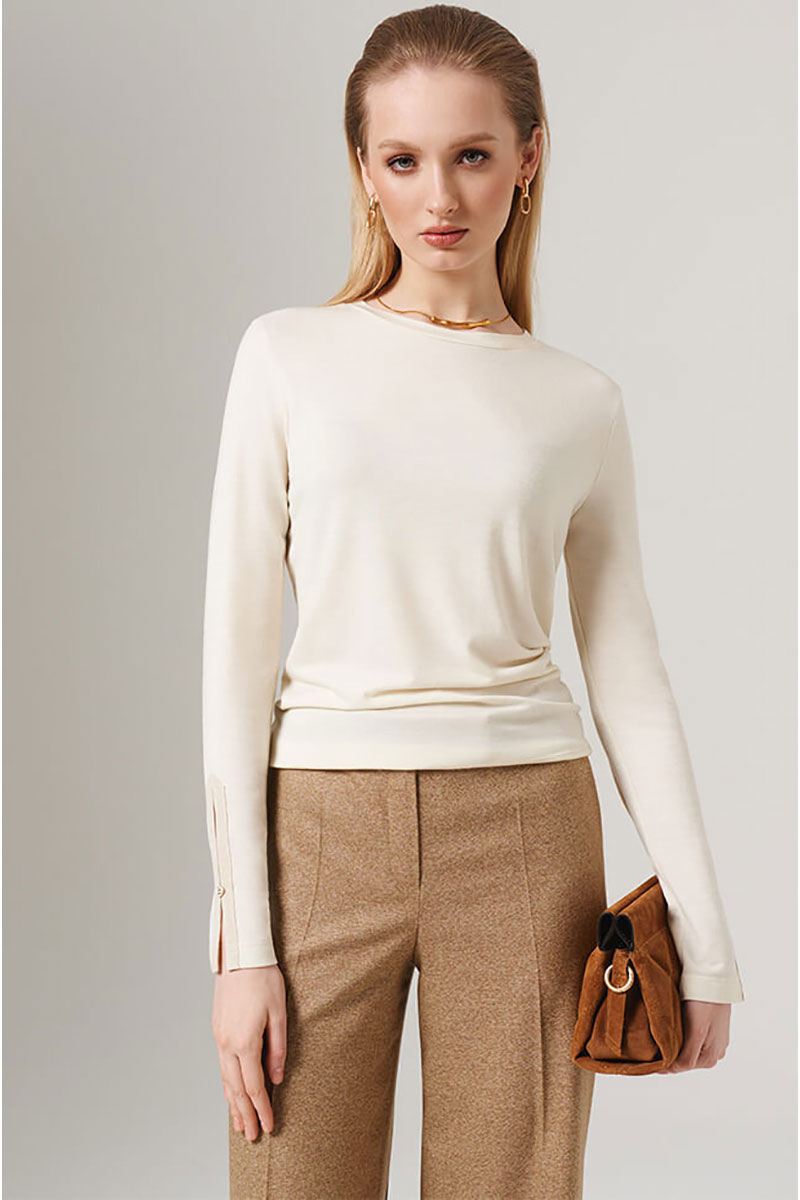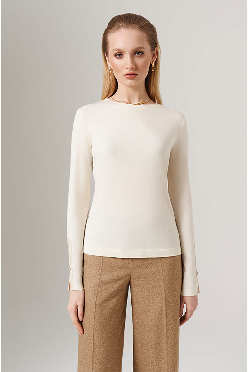 Базовый вязанный женский джемпер от бренда NELVA - идеальное дополнение вашего гардероба! Создана для женщин, предпочитающих комфорт и шикарный внешний вид. Благодаря своему дизайну эта блузка отлично подчеркивает женственность и утонченность обладательницы. Лонгслив свободного силуэта, выполнен из смесового полотна. Овальный вырез горловины придает ему утонченность. Удлиненные рукава заканчиваются разрезами, декорированы пуговицей и контрастной обтачкой, что делает джемпер уникальным в своем дизайне. Сзади на горловине выполнен небольшой разрез, декорирован пуговицей. Данный джемпер гармонично впишется в офисный гардероб, подойдет для романтического свидания или дружеской встречи. Отлично сочетается с юбками-карандашами, джинсами скинни или широкими брюками. Сделайте выбор в пользу стиля и удобства - выберите этот лонгслвив уже сегодня! С любовью и заботой о Вас, команда бренда NELVA!