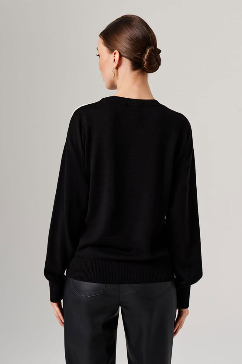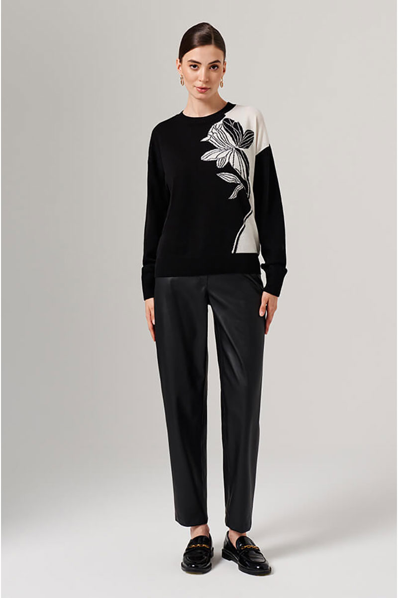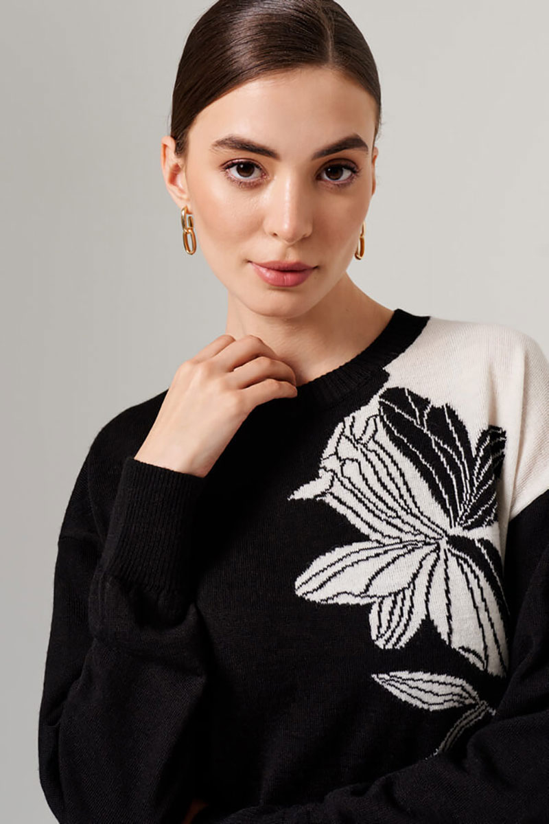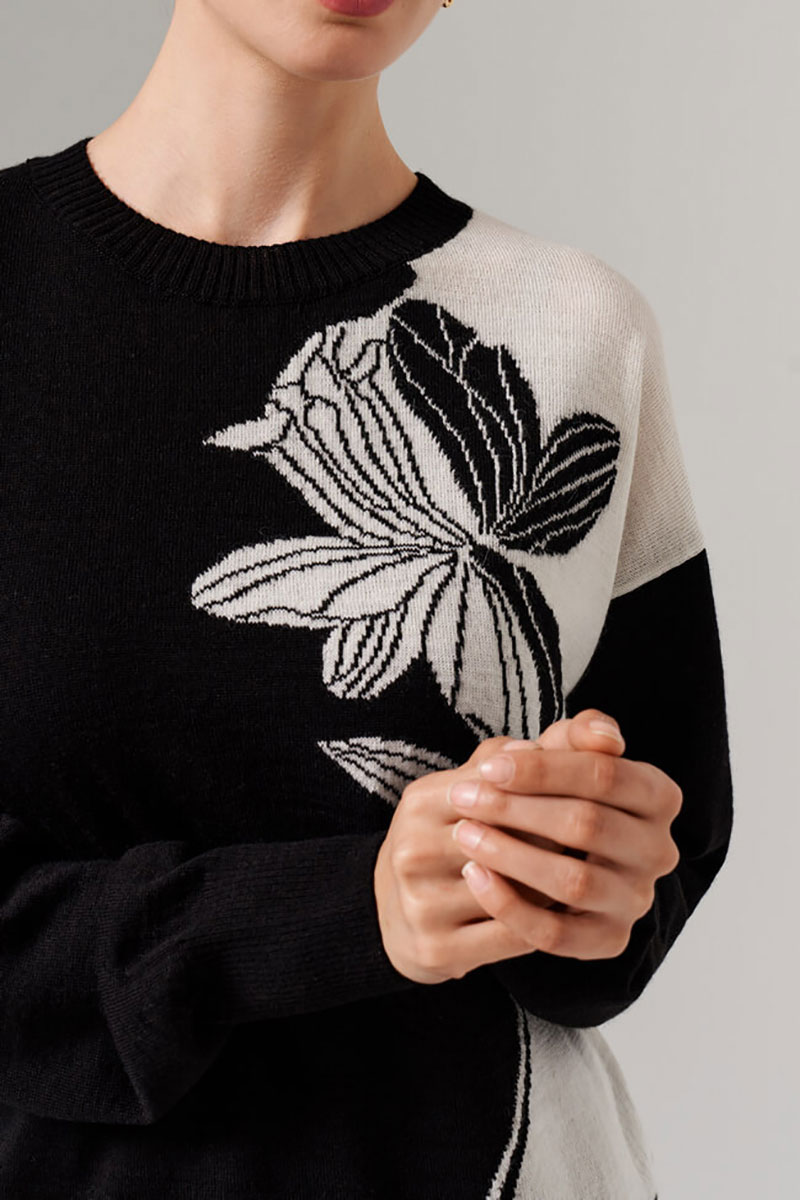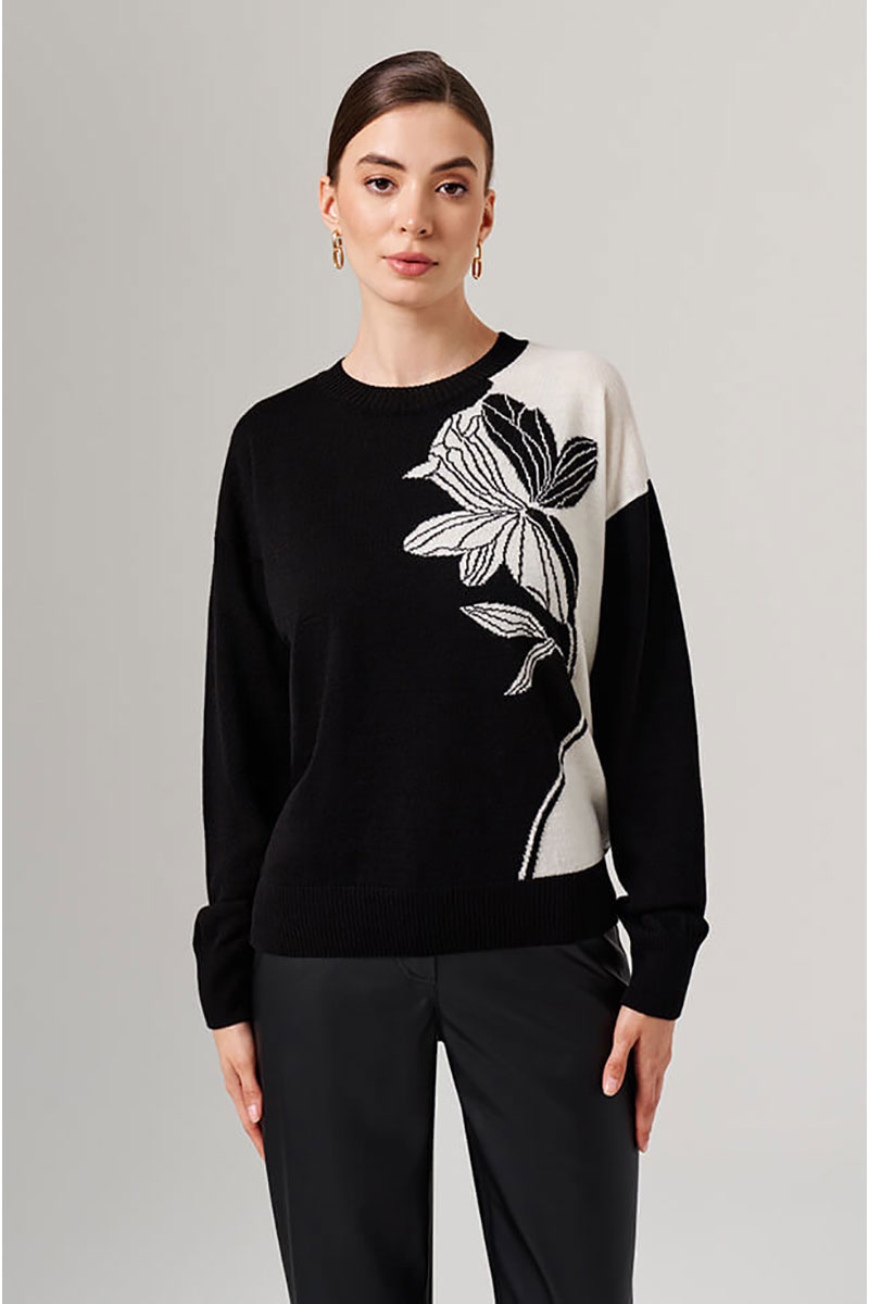 Вязаный двухцветный женский джемпер свободного силуэта от бренда NELVA станет ярким и стильным акцентом в вашем гардеробе. Данный джемпер создан для женщин, предпочитающих комфорт и шикарный внешний вид. Благодаря своему дизайну он отлично подчеркивает женственность и утонченность обладательницы. Изделие выполнено в технике «Интарсия» из премиального смесового полотна с добавлением шерсти и альпаки. Округлый вырез горловины и спущенная линия плеча придают джемперу свободу движений и универсальность. Горловина и низ рукавов джемпера на вывязанной резинке. Качественные материалы и продуманный крой делают эту модель универсальной вещью, которая подарит вам ощущение уютной уверенности и стиля в любой ситуации. С любовью и заботой о Вас, команда бренда NELVA!