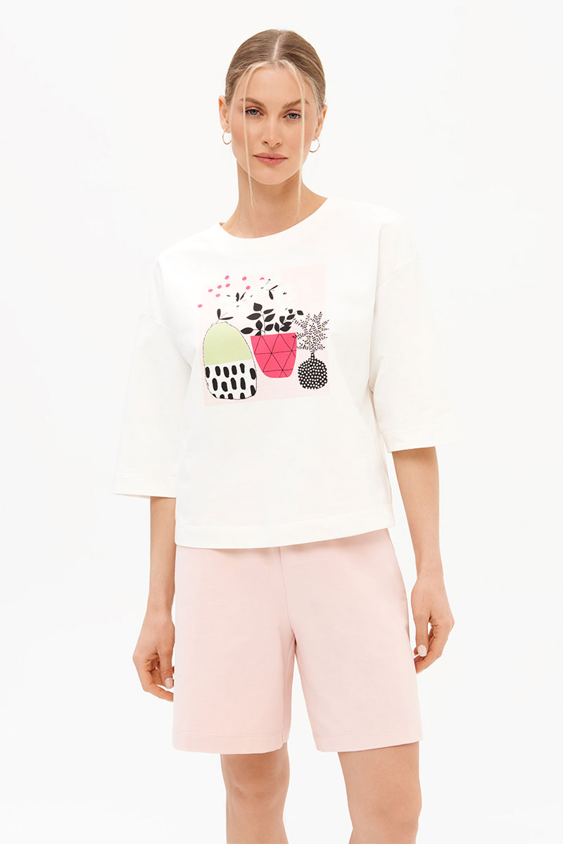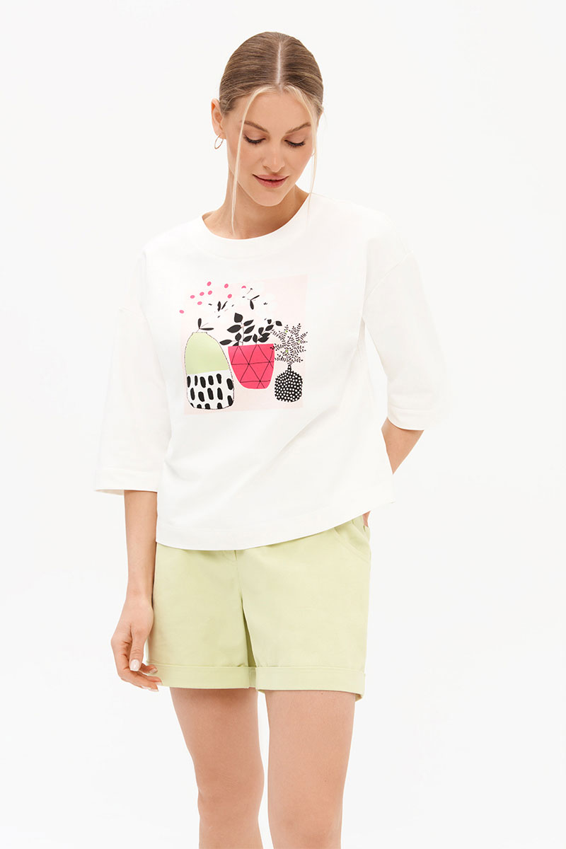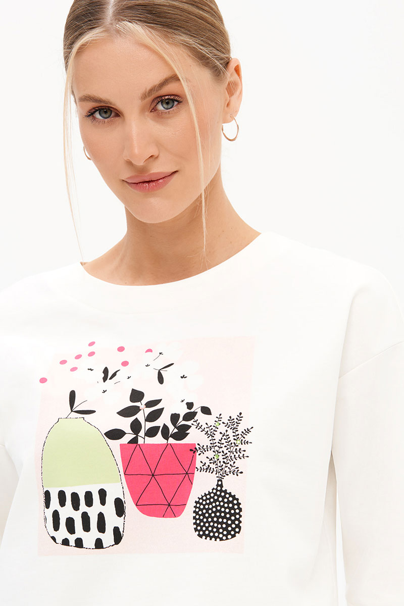 Добавьте в свой гардероб свежесть и стиль с женским свитшотом в белом цвете от бренда FRIDAY by NELVA. Эта уникальная модель с оригинальным принтом в виде вазы станет ярким акцентом вашего повседневного образа, придавая ему изысканность и оригинальность. Изготовленный из высококачественного хлопкового материала, джемпер обеспечивает великолепный комфорт и отличную воздухопроницаемость, делая его идеальной для носки в любое время года. Молочный цвет создает чистый и светлый образ, а художественный принт в виде вазы добавляет индивидуальности и шарма. Свитшот имеет классический крой, который отлично садится по фигуре, подчеркивая достоинства и обеспечивая свободу движений. Он легко комбинируется с джинсами, шортами и юбками, позволяя создать стильные и современные образы для любого повода — от прогулок по городу до встреч с друзьями. Не упустите возможность выделиться с этом интересным женским джемпером в молочном цвете с принтом от FRIDAY by NELVA. Стильно, удобно и оригинально — это то, что вам нужно! С любовью и заботой о Вас, команда брендов FRIDAY by NELVA и NELVA!