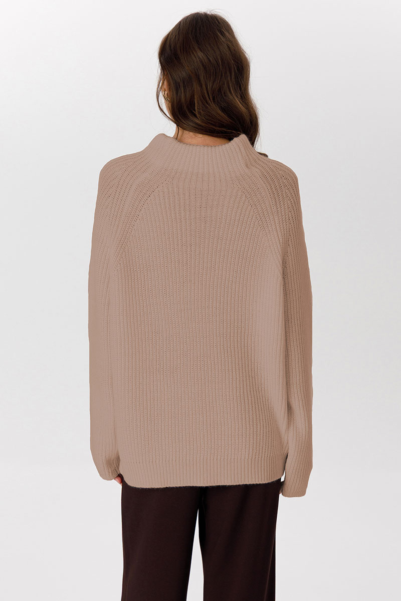 Стильный дизайн: Высокий ворот и классический крой делают джемпер универсальным для создания различных образов — от повседневных до более официальных.