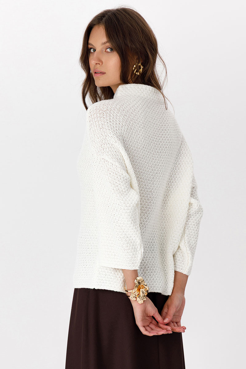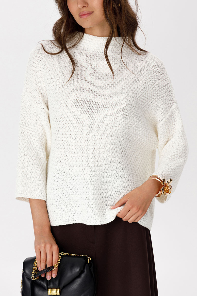 Стильный дизайн: Переплетение соты и простой крой делают этот джемпер универсальным и подходящим для любого случая.