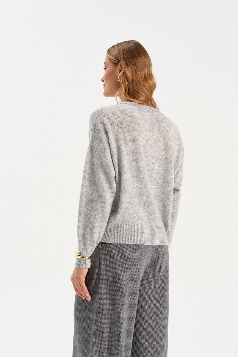 Стильный и удобный джемпер из мягкой пряжи станет идеальным дополнением вашего гардероба в прохладные дни. Базовые оттенки (молочный, светло-серый, шоколадный, черный) делают его универсальным — он легко сочетается с любыми цветами и стилями одежды.