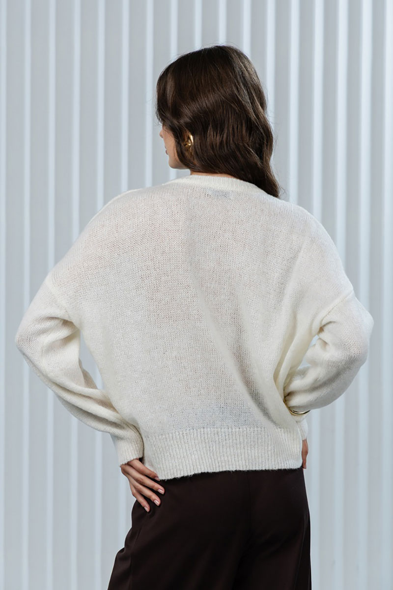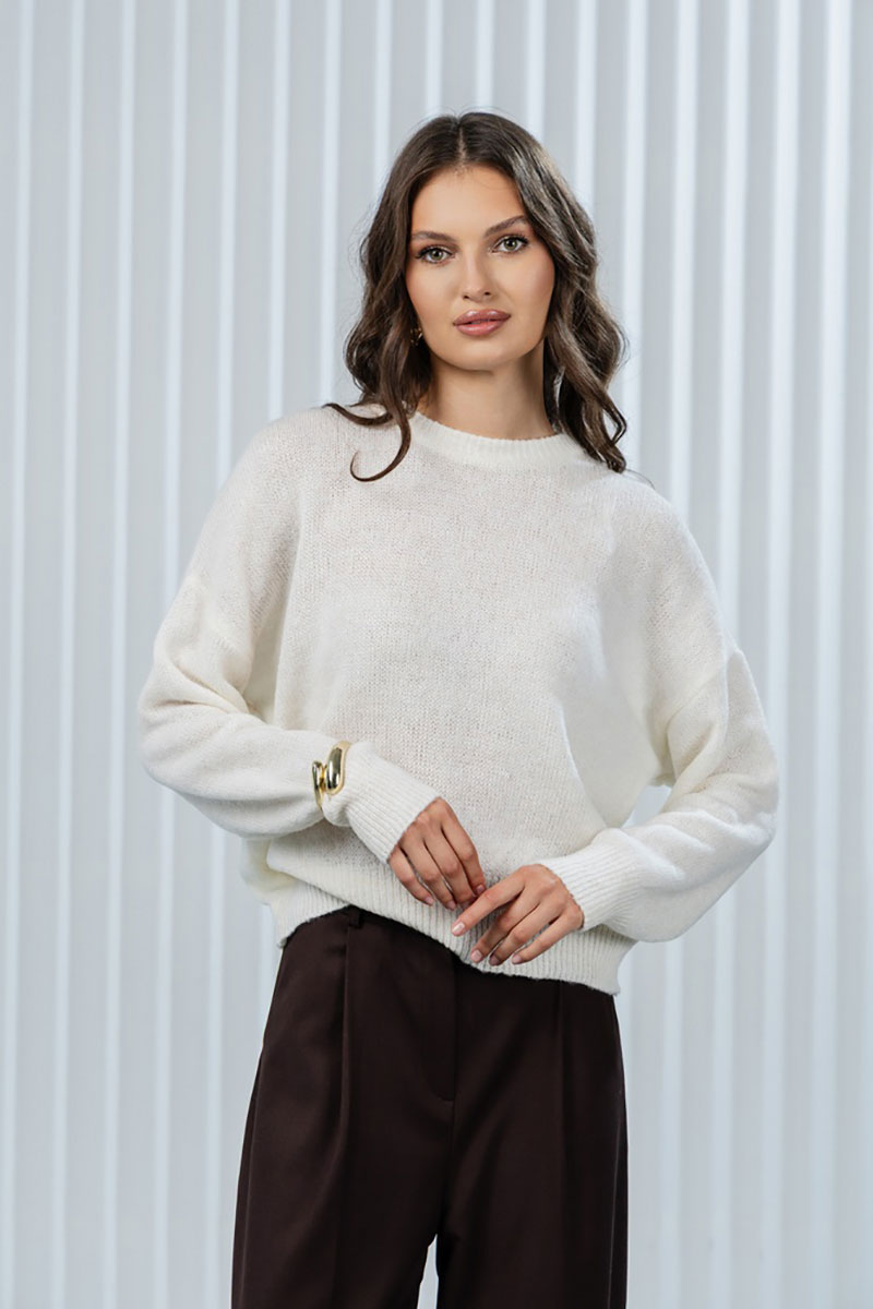 Стильный и удобный джемпер из мягкой пряжи станет идеальным дополнением вашего гардероба в прохладные дни. Базовые оттенки (молочный, светло-серый, шоколадный, черный) делают его универсальным — он легко сочетается с любыми цветами и стилями одежды.