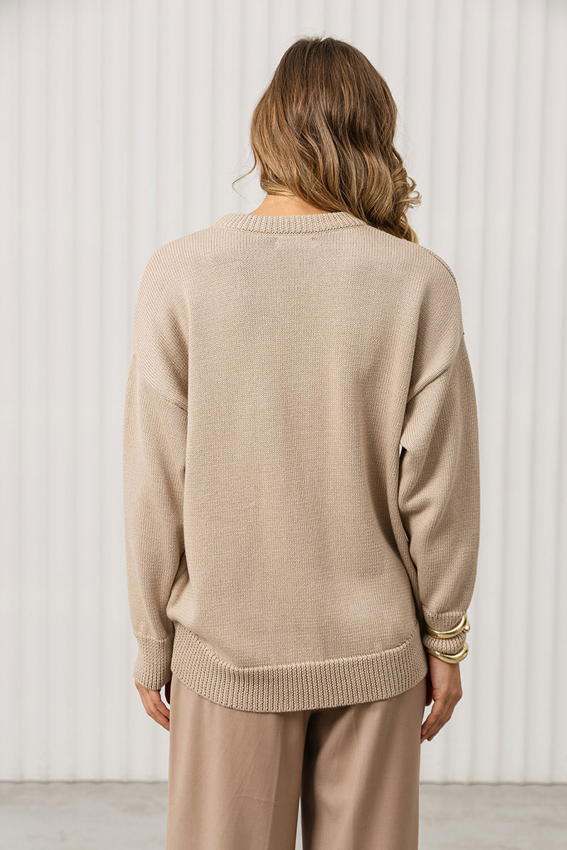 Крой: свободный, слегка удлинённый, что делает свитер универсальным для различных стилей и случаев.