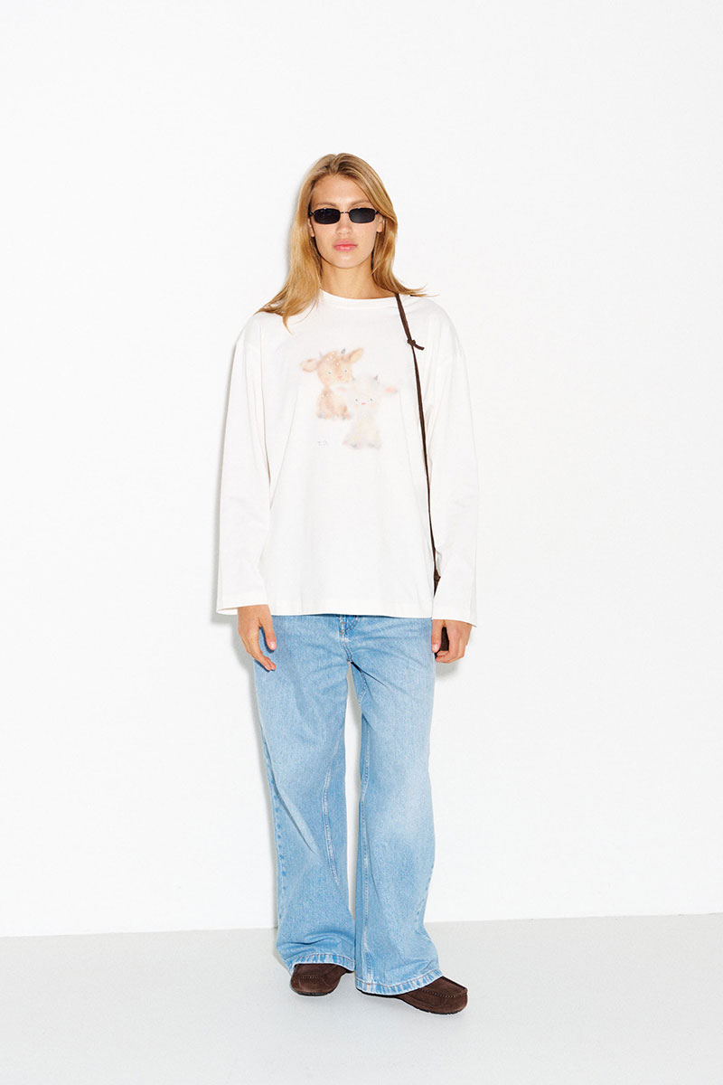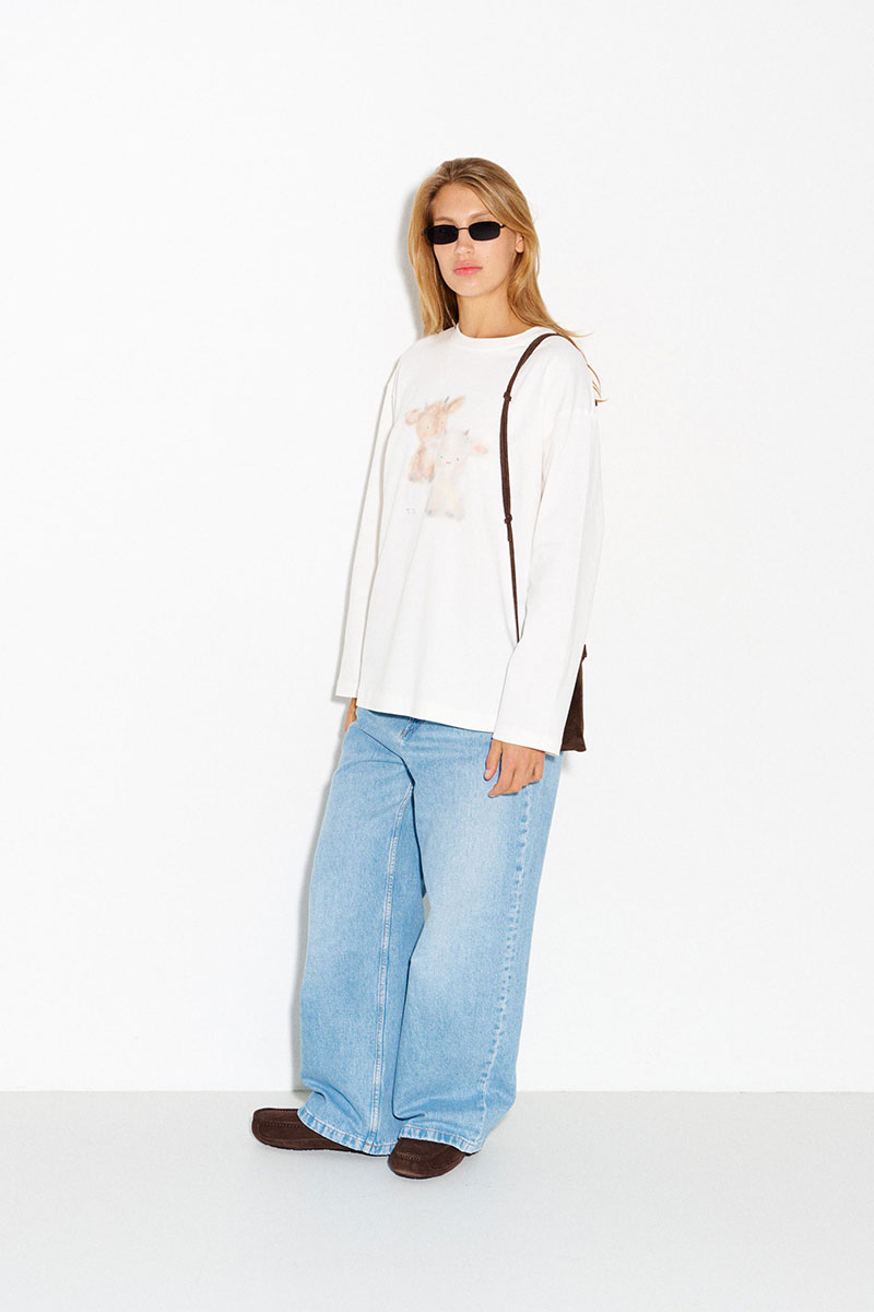 Молочный лонгслив с милым принтом, который не оставляет равнодушным.