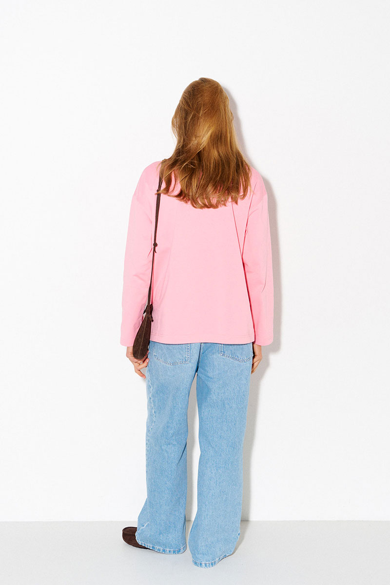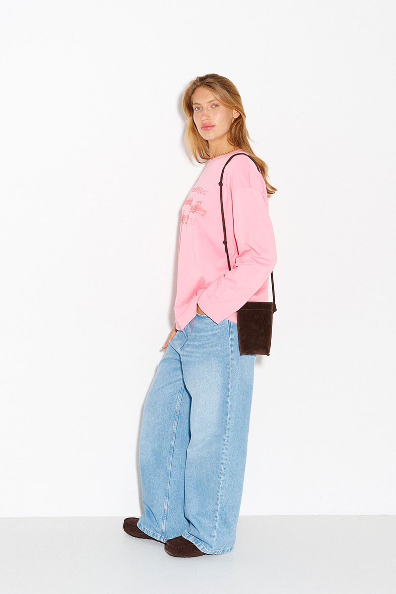Лонгслив из хлопкового трикотажа в розовом цвете с ретроавто Mercedes-Benz.