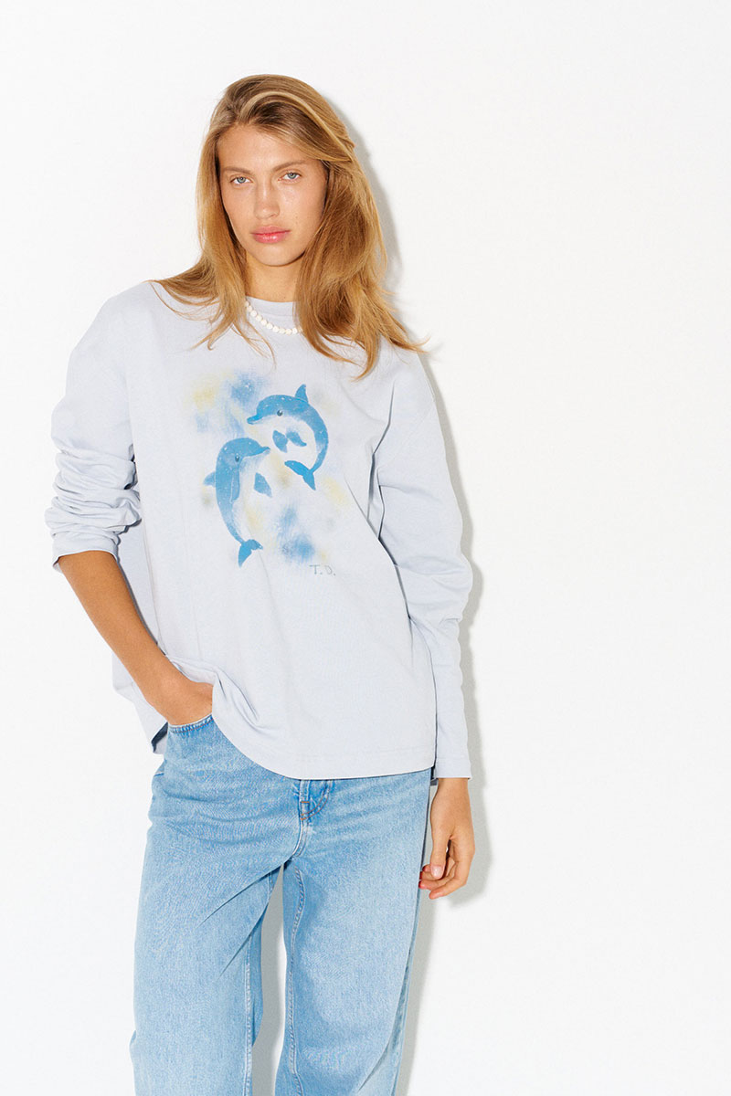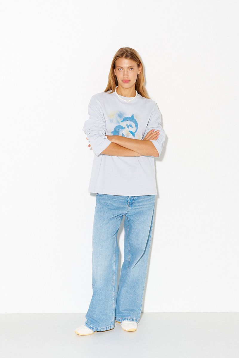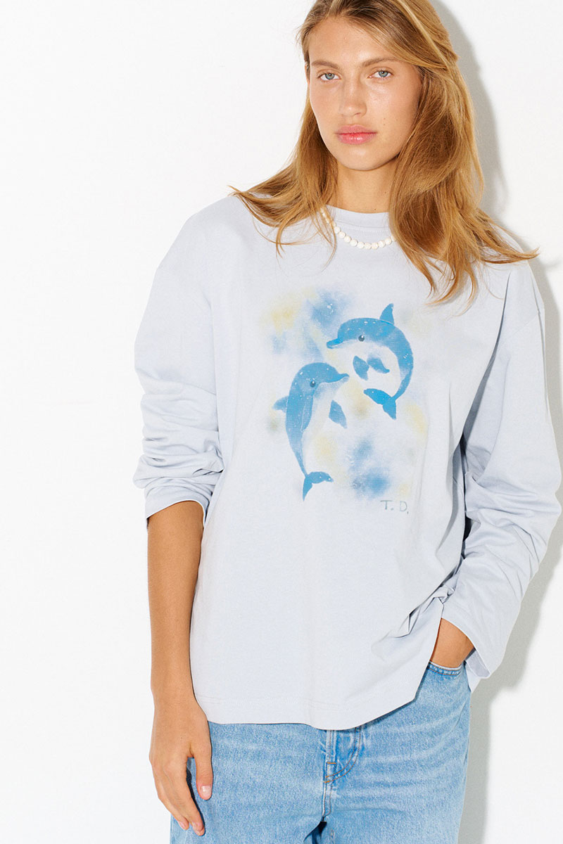 Хлопковый лонгслив с принтом в светло-сером цвете.