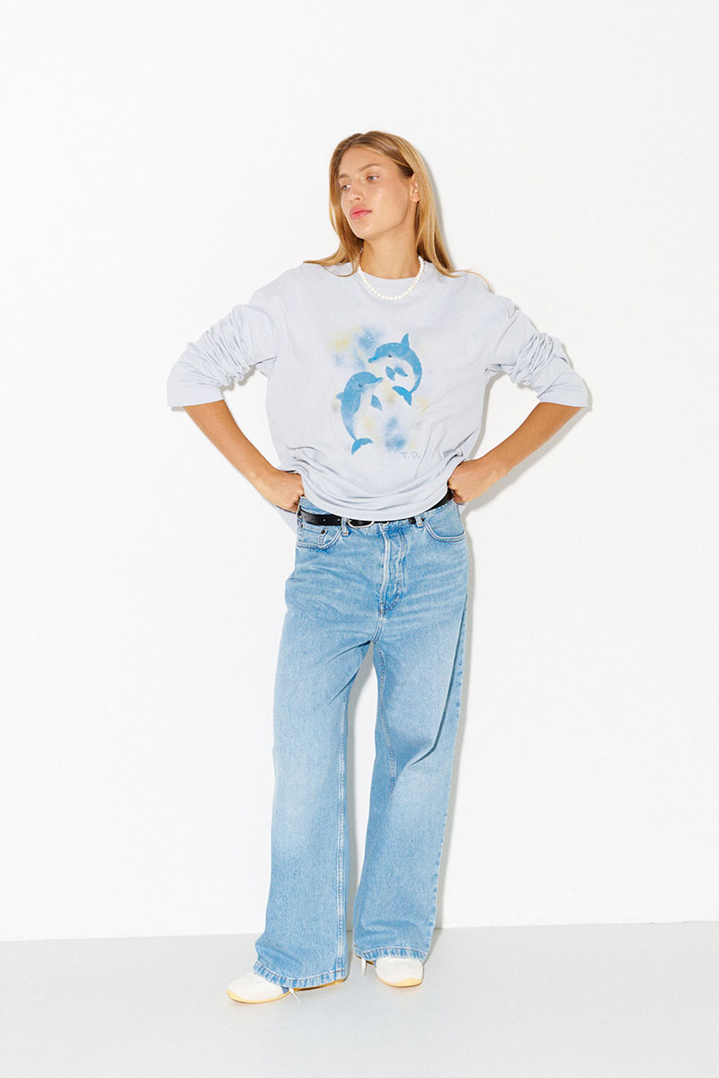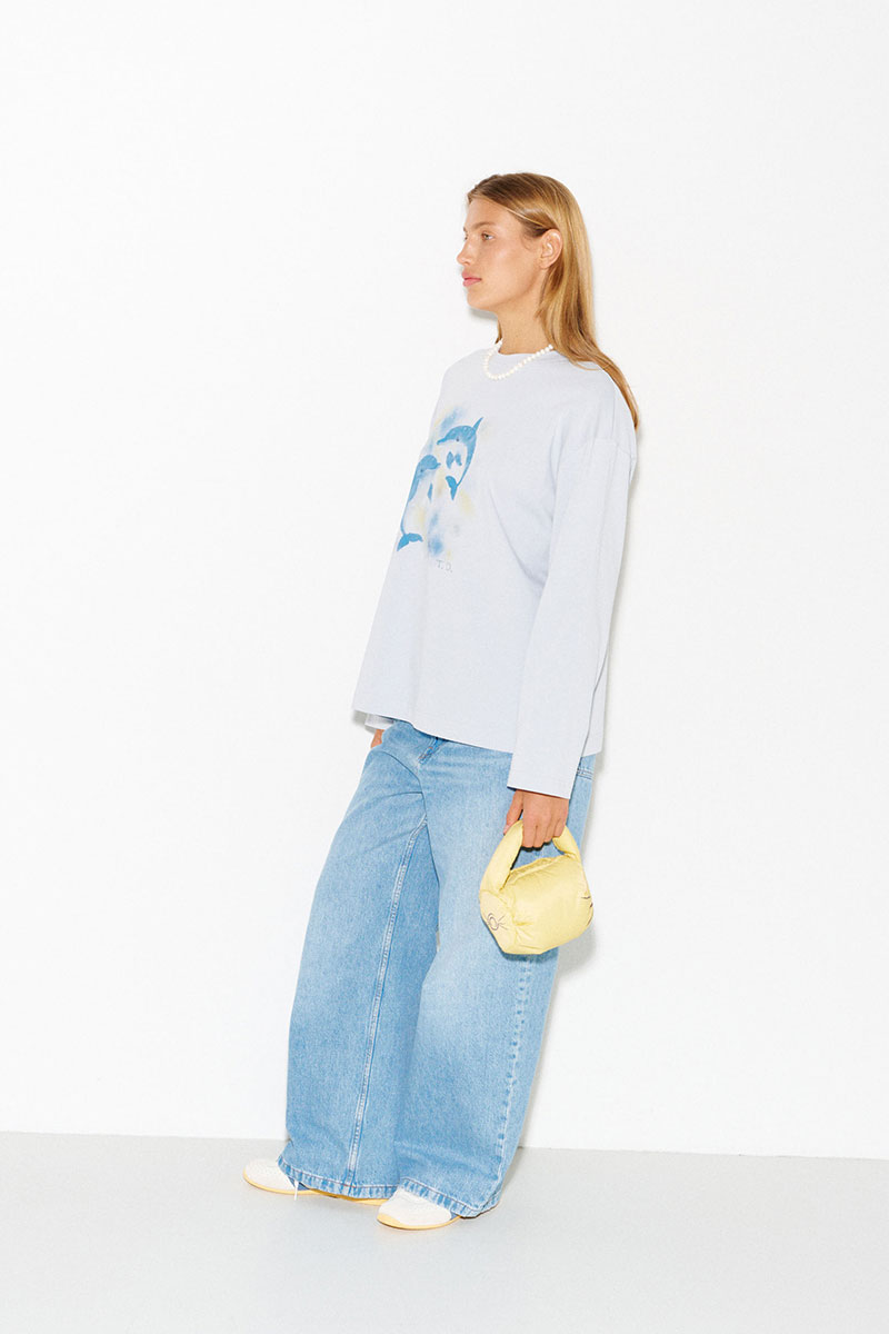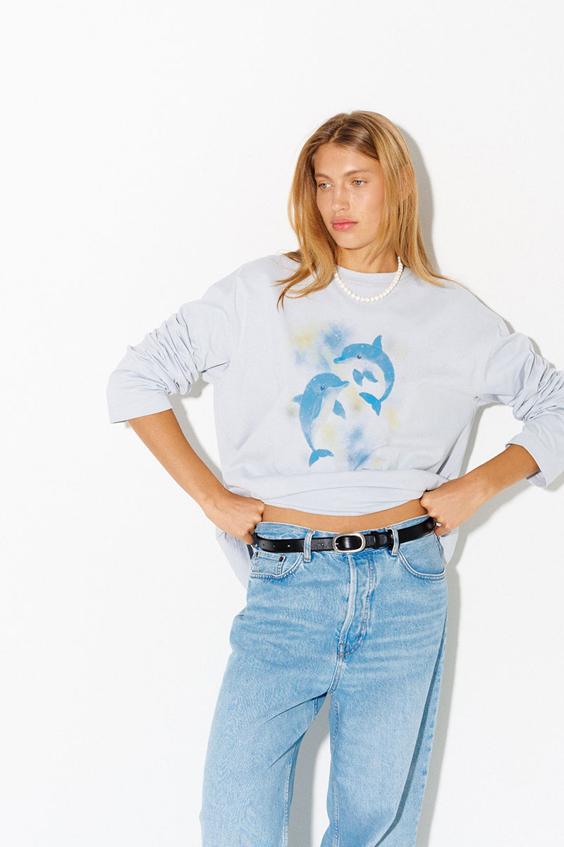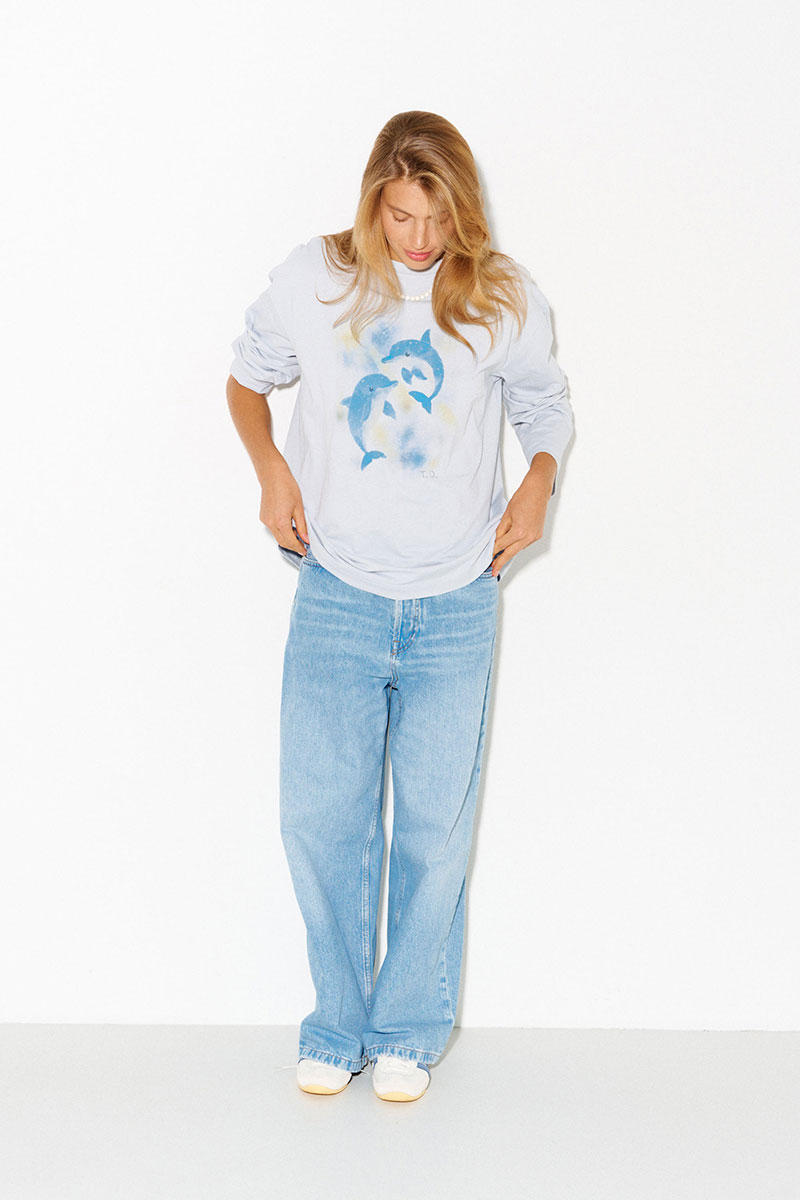 Хлопковый лонгслив с принтом в светло-сером цвете.
