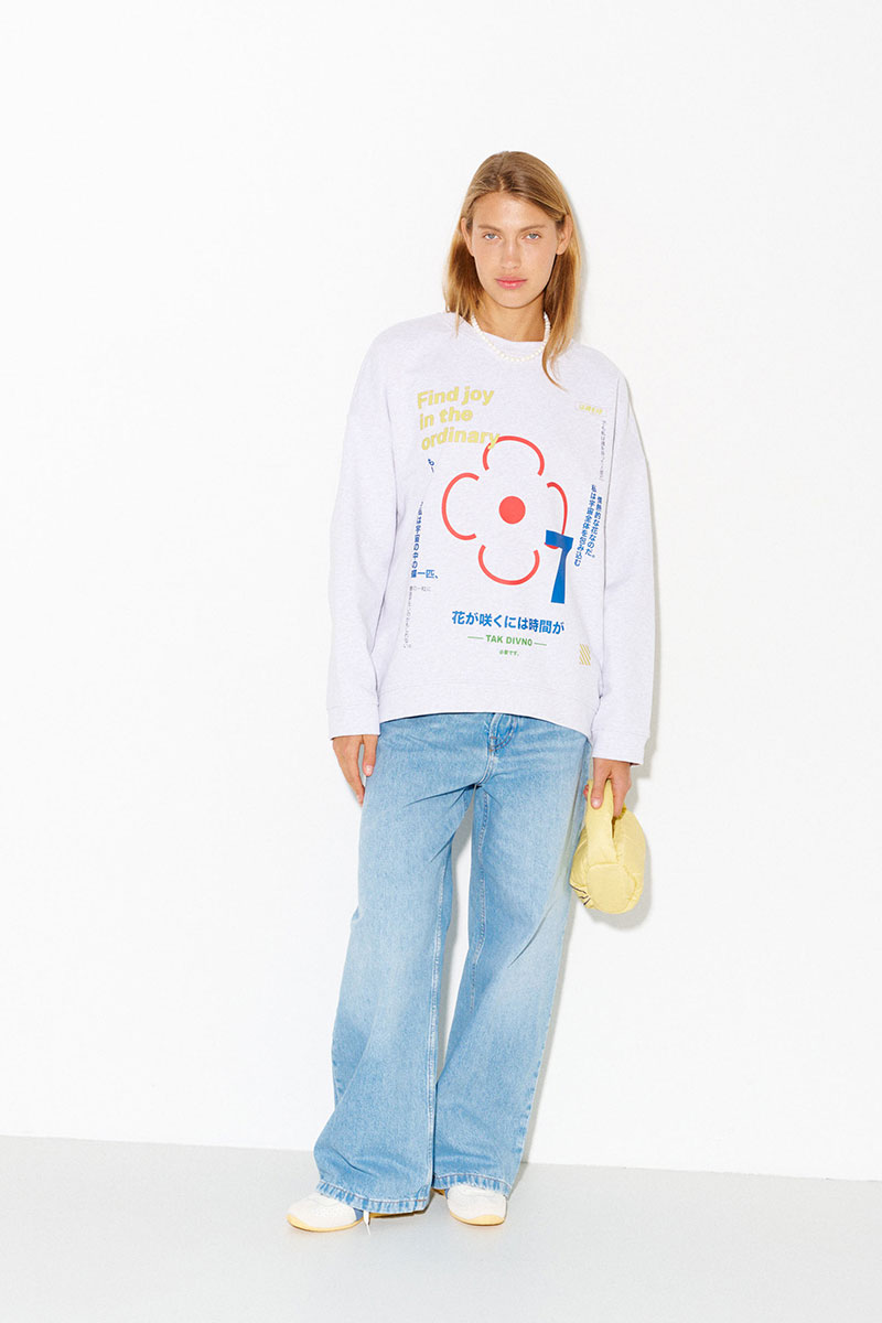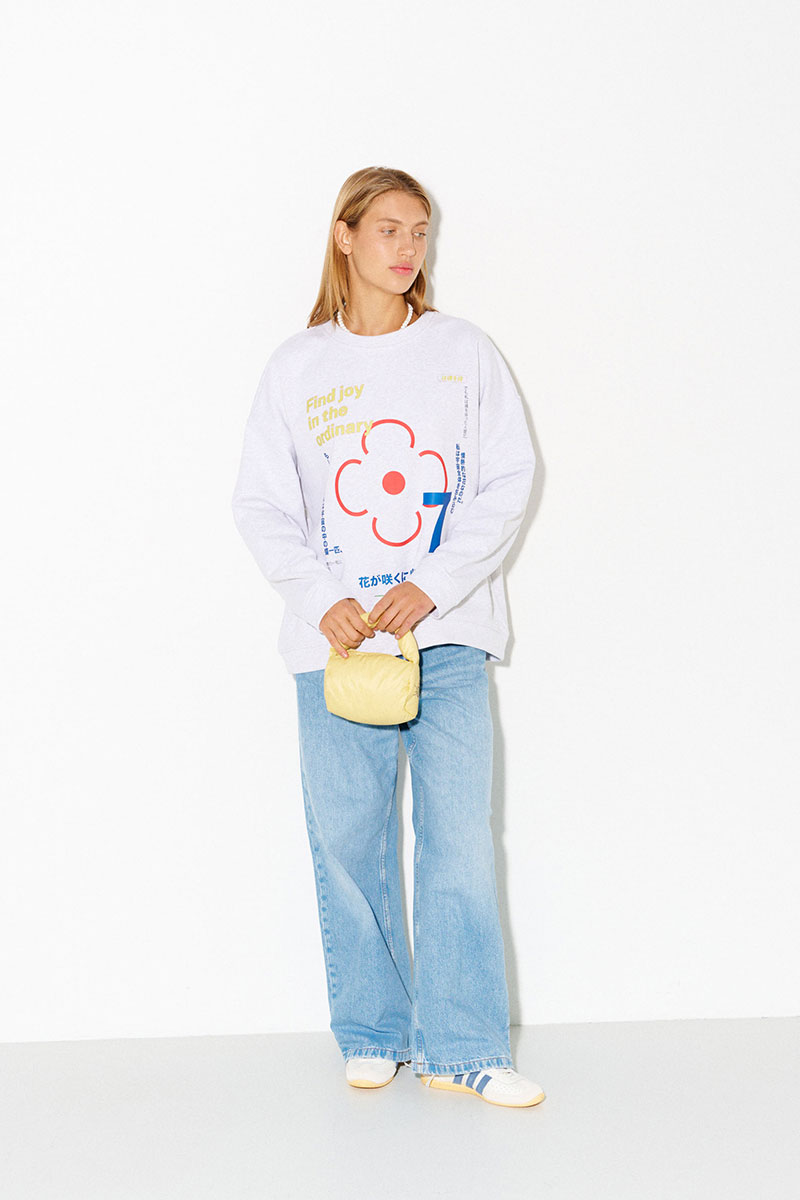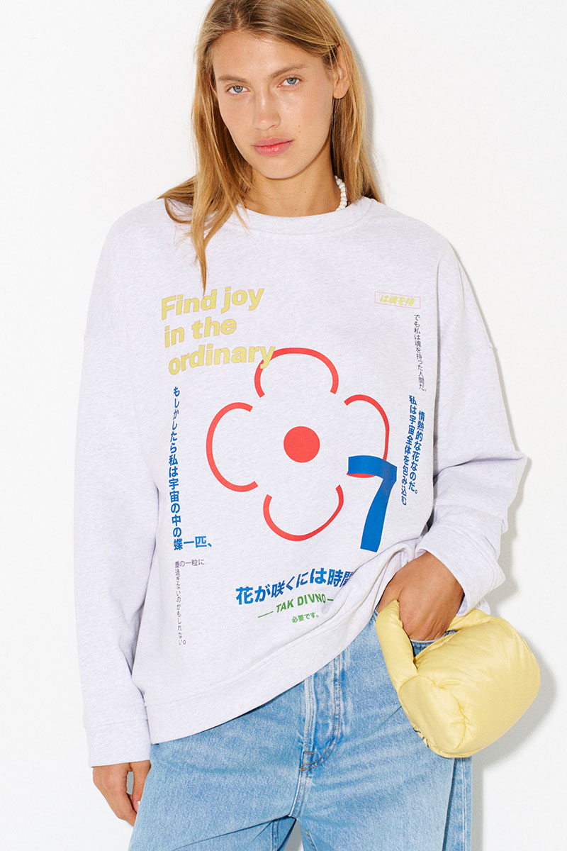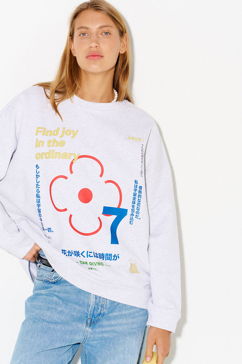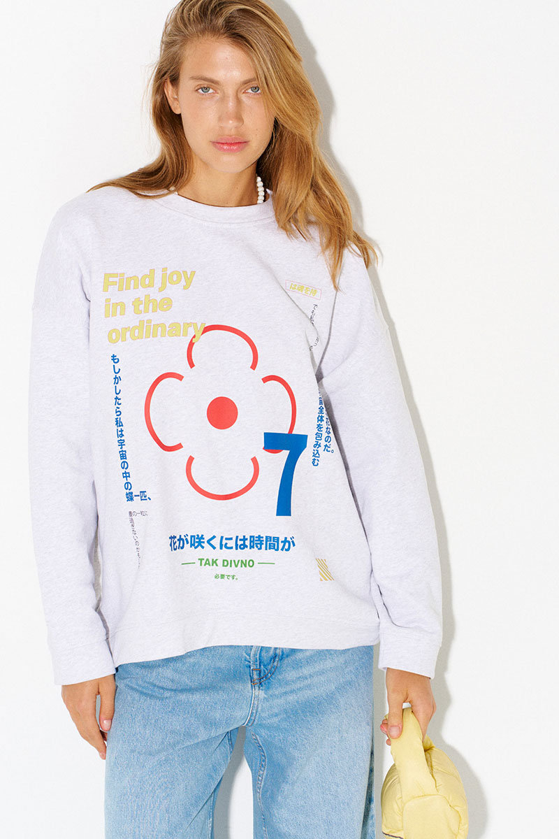 Свитшот из премиального плотного хлопка с английскими и японскими фразами, значение которых объединено общим смыслом - быть счастливым человеком и находить радость в простом.
