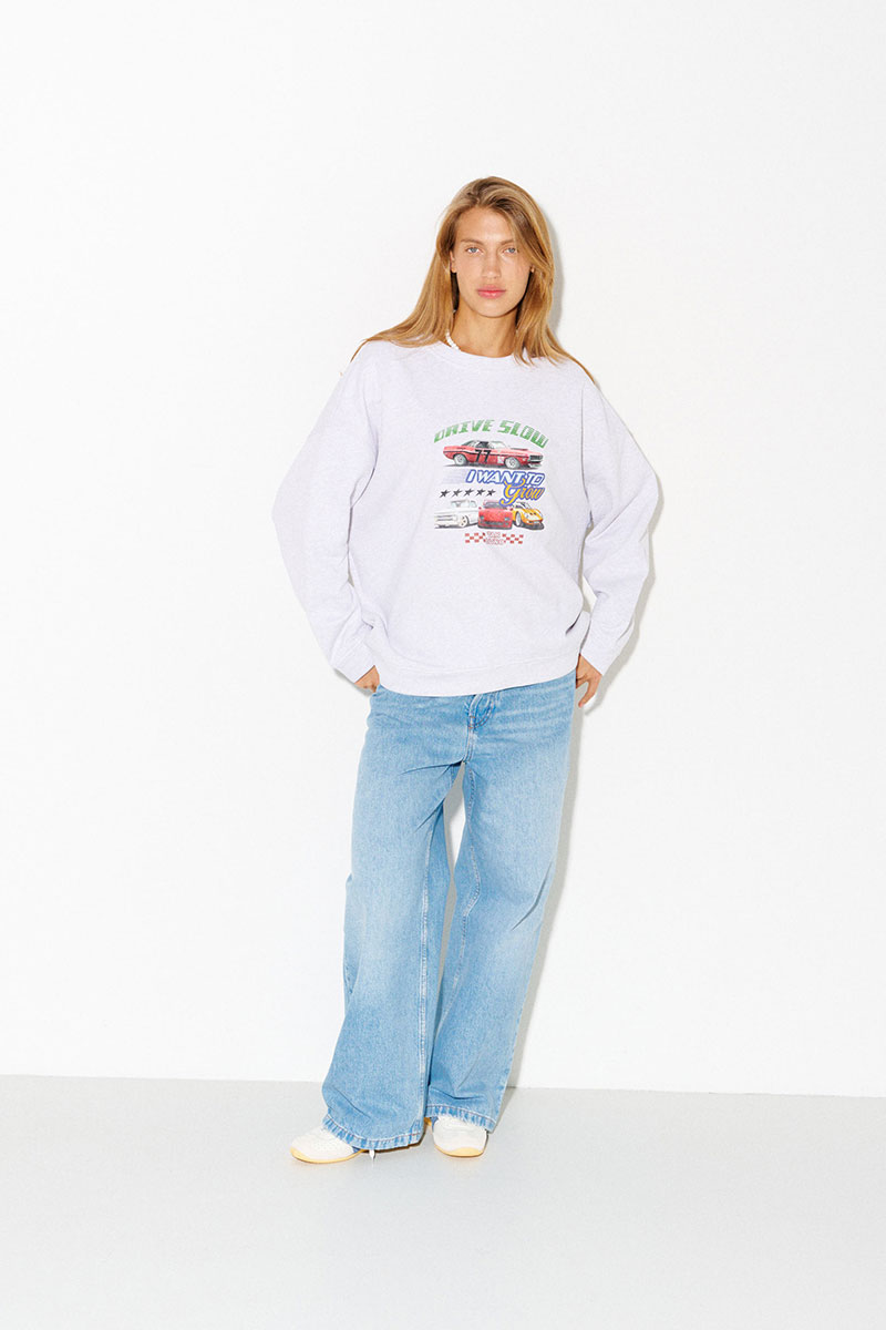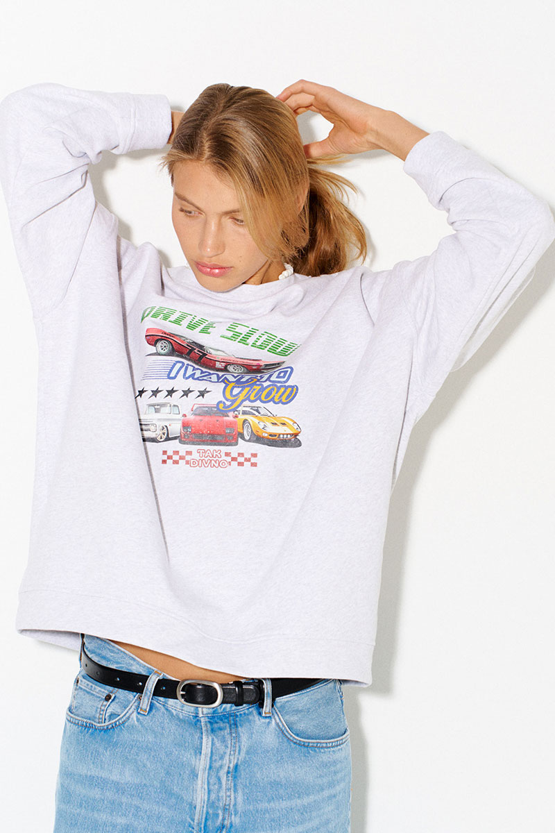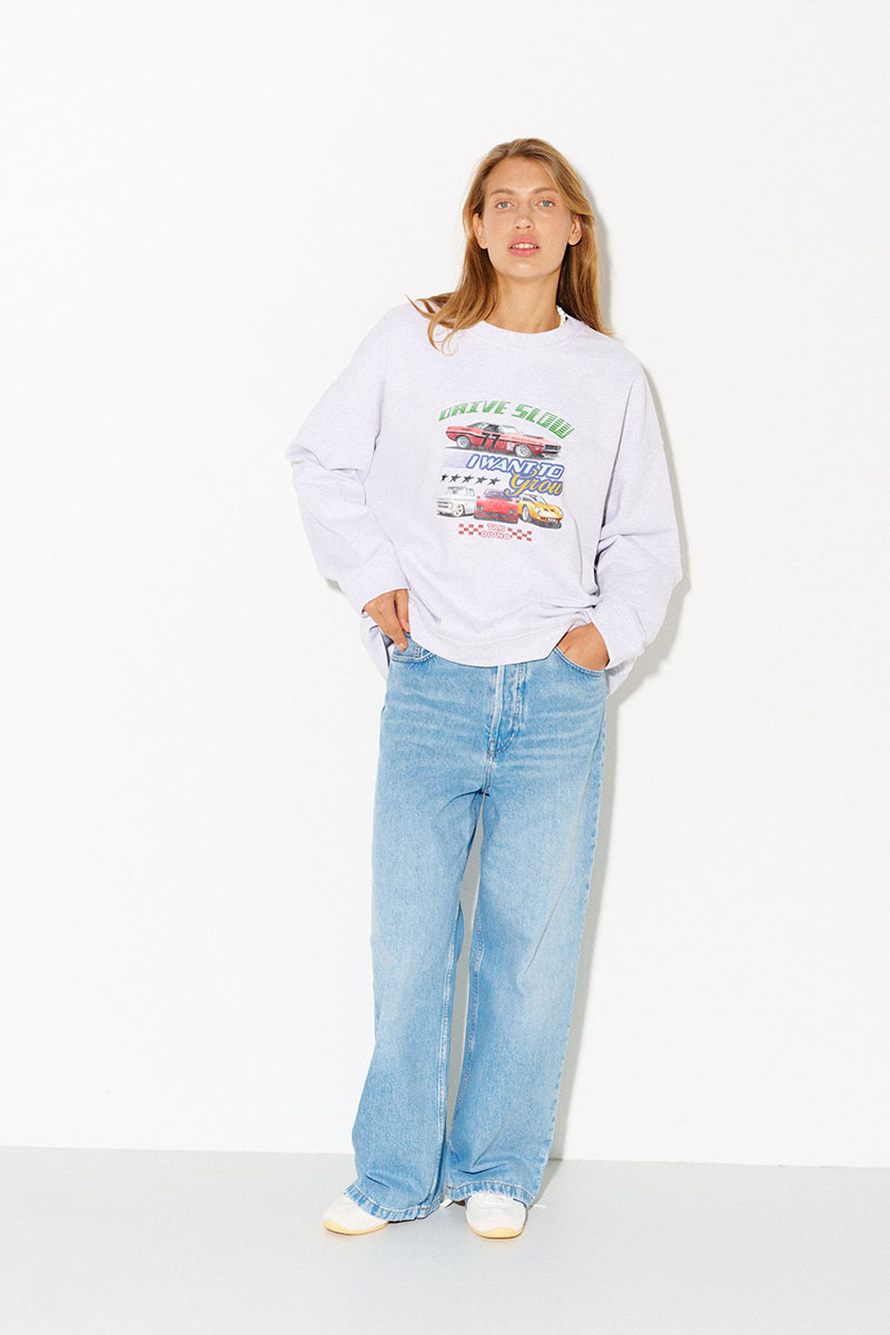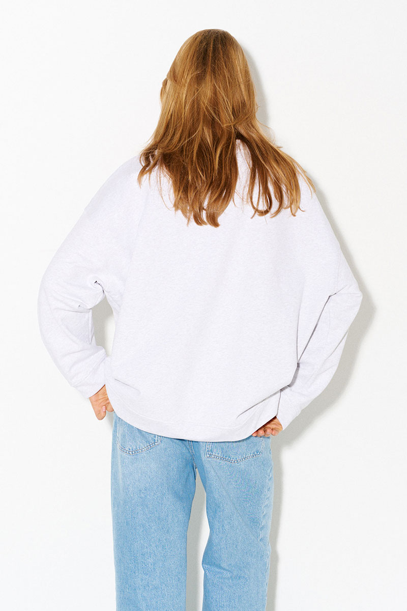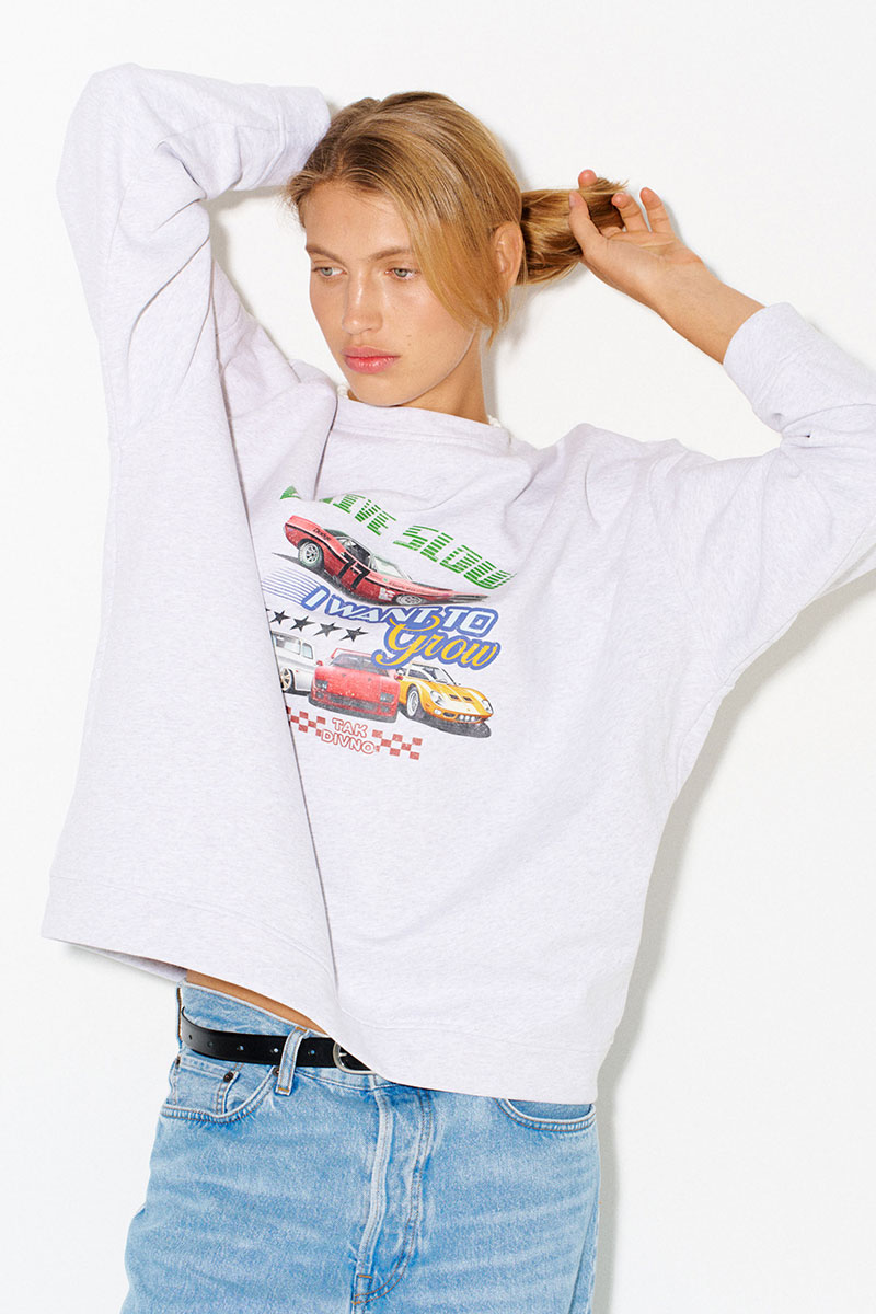 Свитшот из премиального плотного хлопка в цвете серый меланж с принтом.