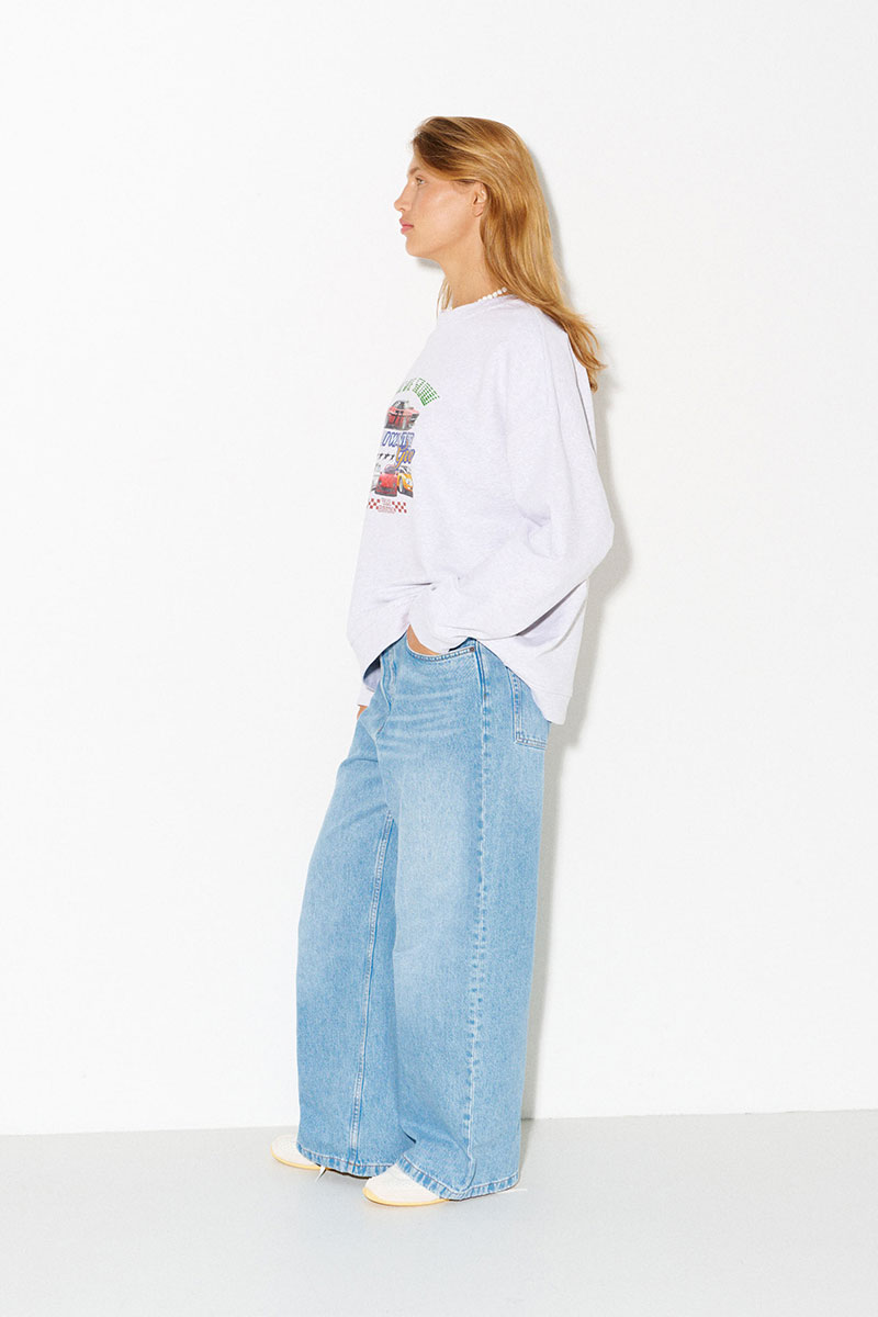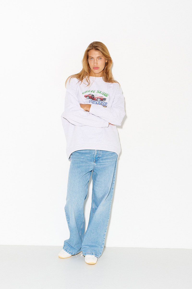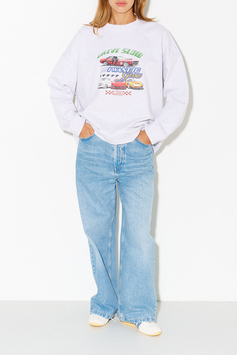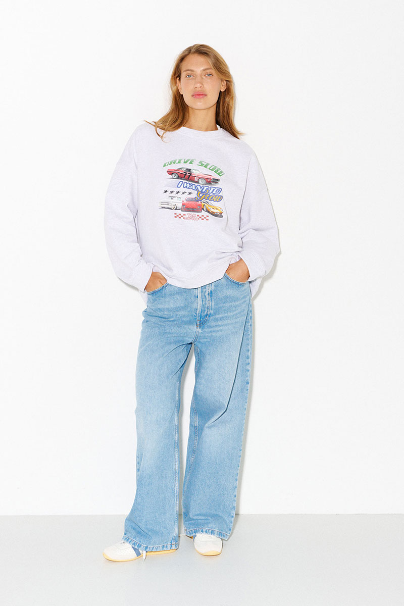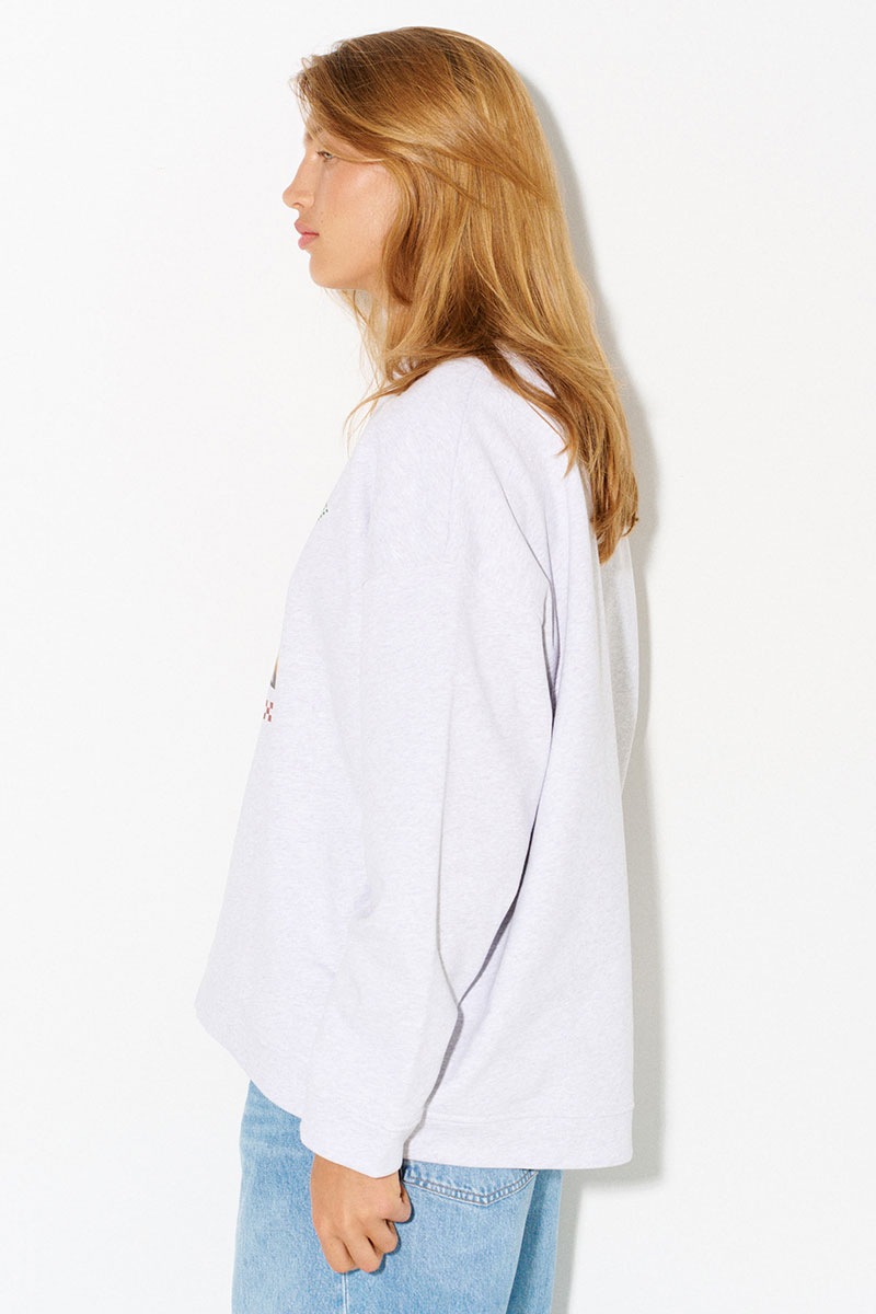 Свитшот из премиального плотного хлопка в цвете серый меланж с принтом.