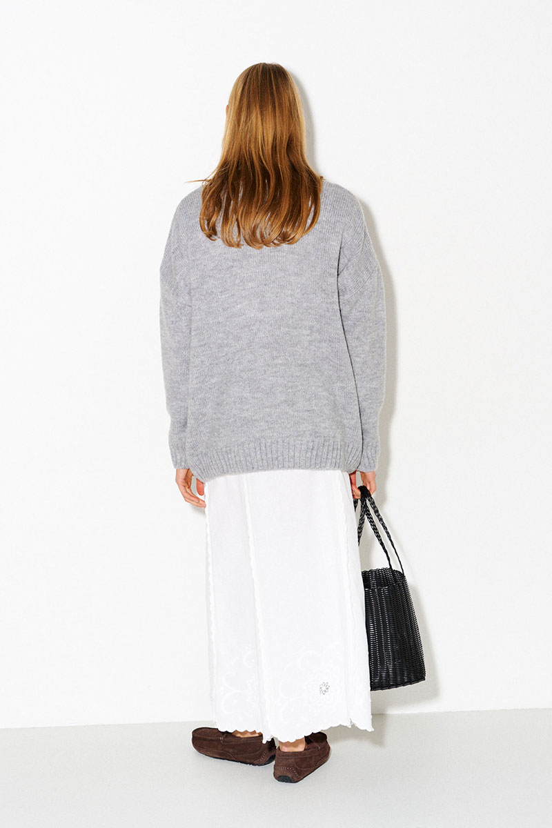 Пуловер в базовом сером цвете из мягкой шерстяной пряжи.