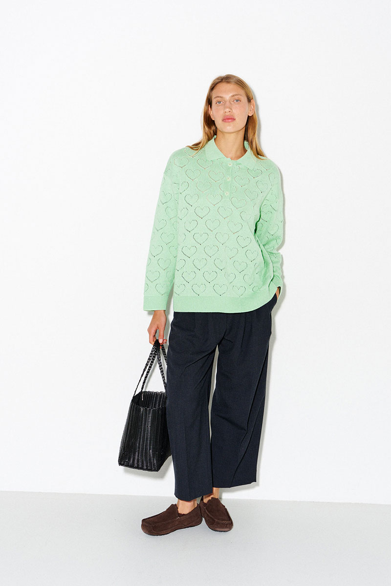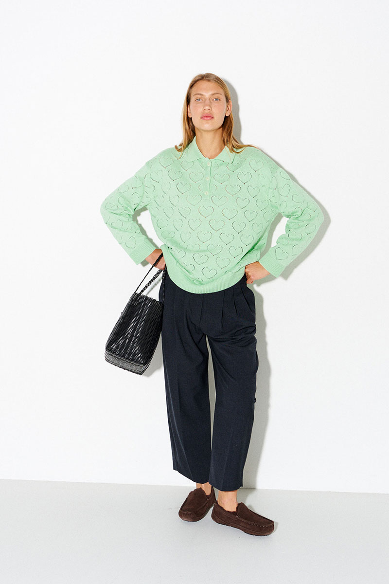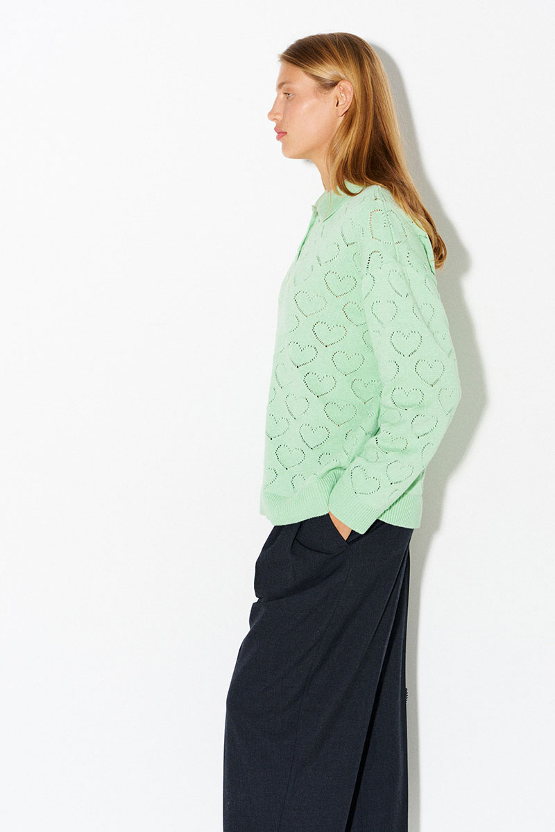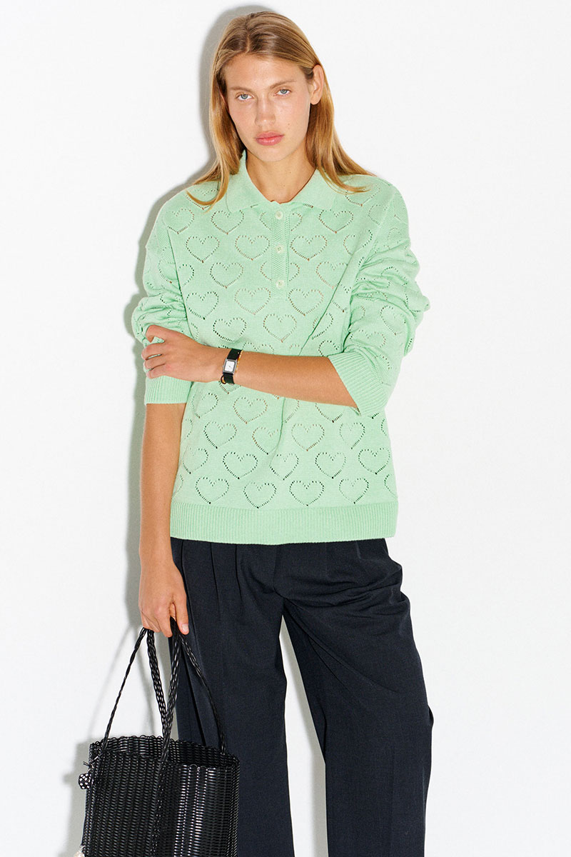 Джемпер поло фактурной вязки с узором в виде сердец.