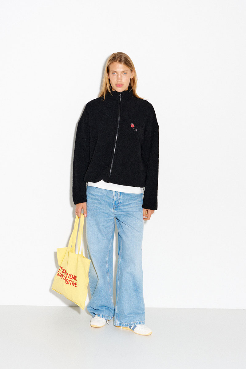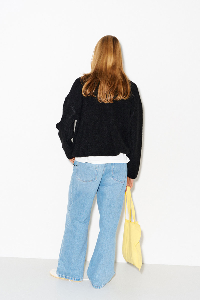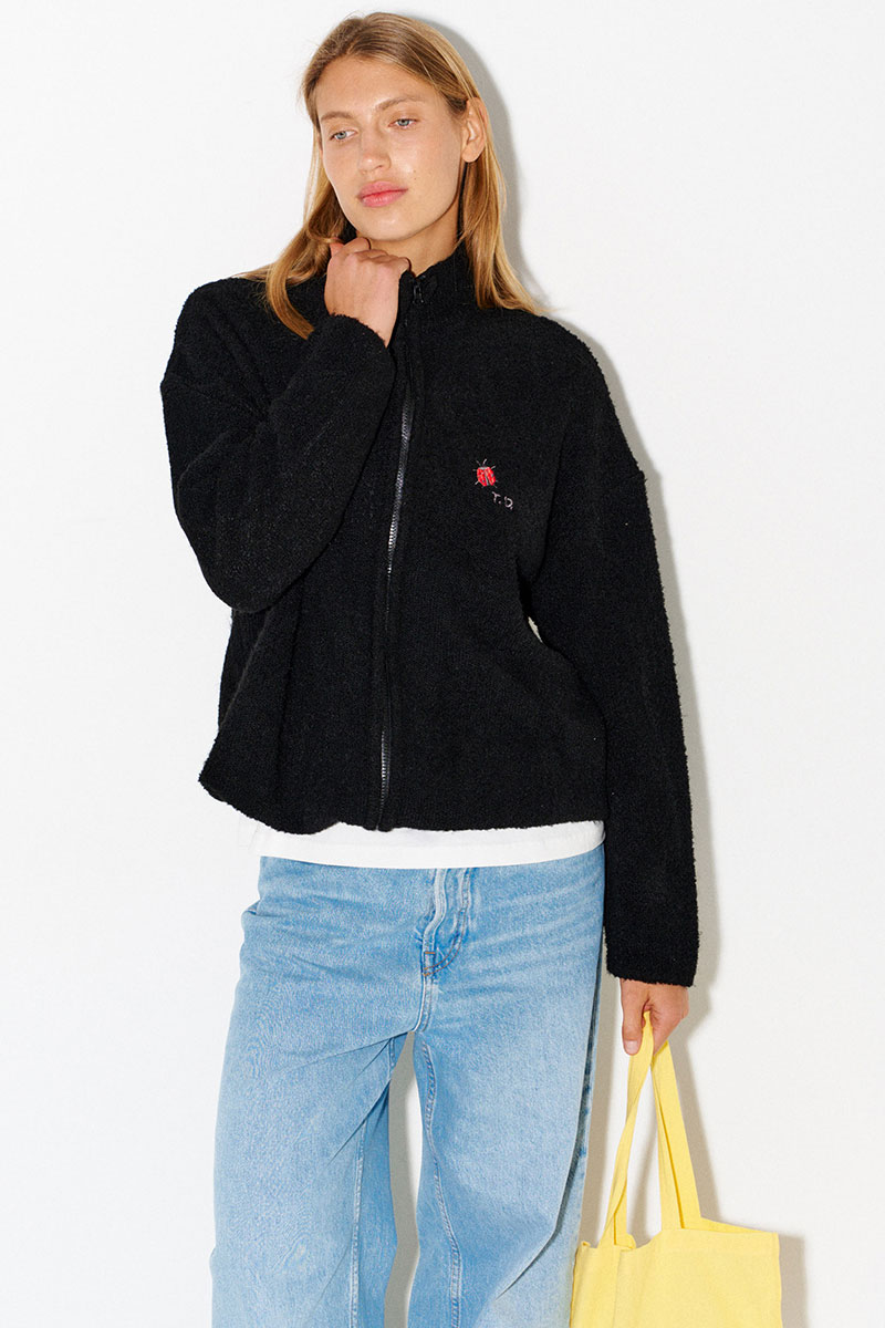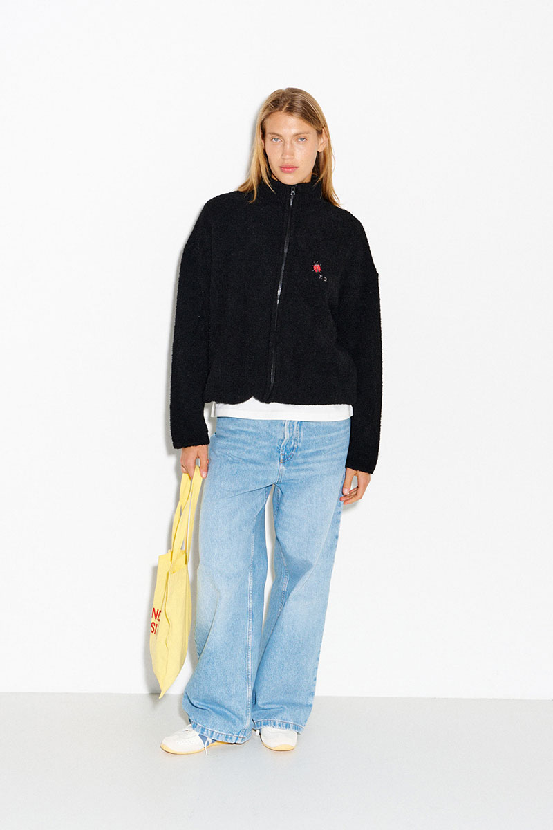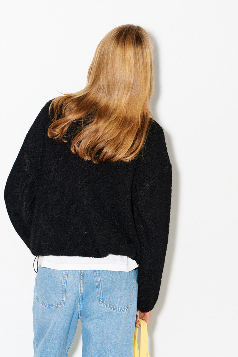 Олимпийка, выполненная из пряжи букле в черном цвете. Подходит как для повседневной носки, так и для отдыха.