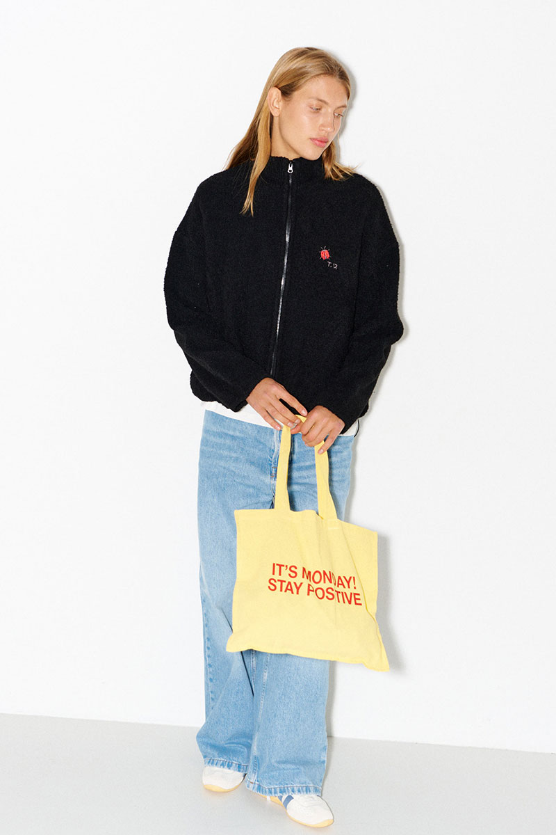 Застегивается на молнию, по бокам – резинка с фиксаторами для регулировки объема. На груди расположена вышивка – божья коровка и обозначение бренда T.D.