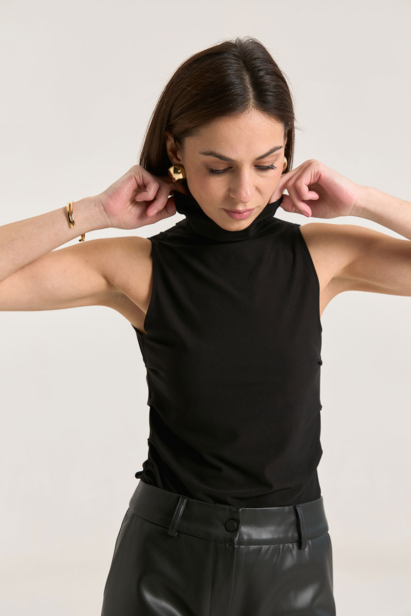 Джемпер выполнен из трикотажной ткани премиального класса, ткань плотная, мягкая, не просвечивает. Горло цельнокроеное высокое, за счет этого можно его драпировать либо носить с подворотом, по бокам защипы, что придает фигуре стройности, за счет красивых линий складок.