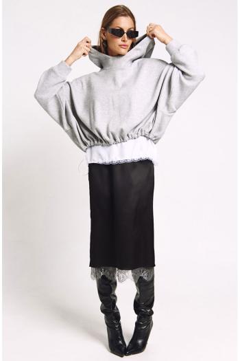 Худи большого объема с необычным капюшоном-стокой. Ширина низа худи регулируется резинками.