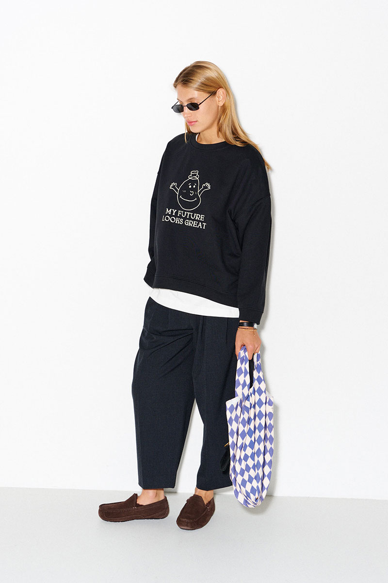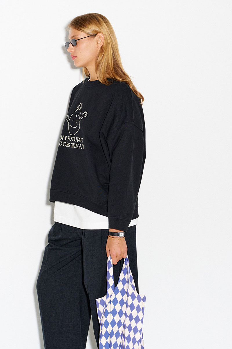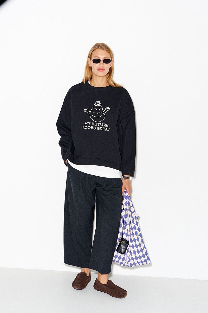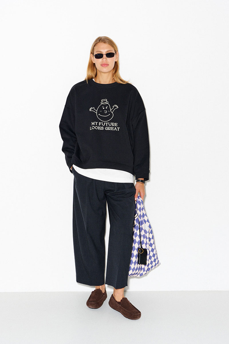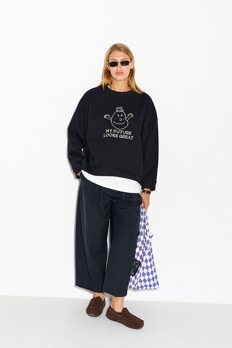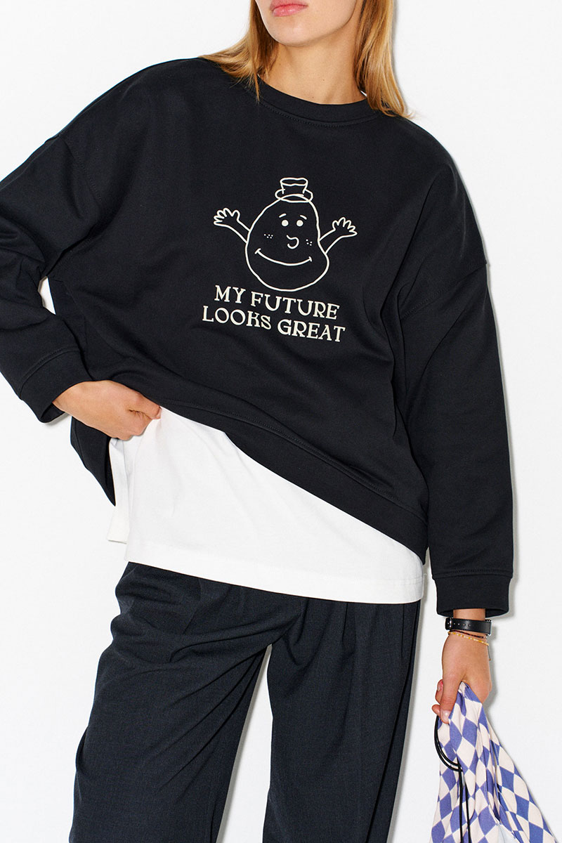 Джемпер в черном цвете с забавным принтом картошки и вдохновляющей надписью «Мое будущее выглядит великолепно».
