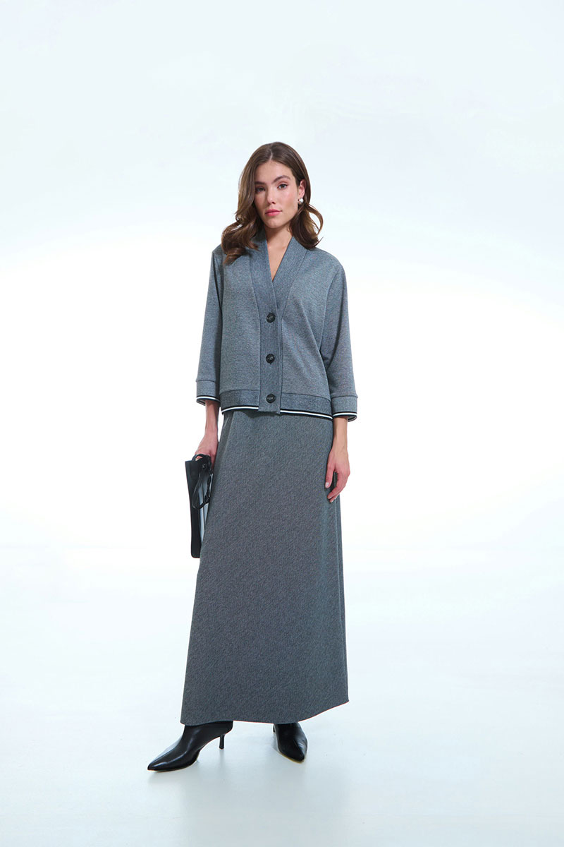 Кардиган застёгивается на аккуратные пуговицы. Втачной рукав с трикотажной манжетой в нижней части обеспечивает удобную посадку и добавляет изделию аккуратности и структурированности.