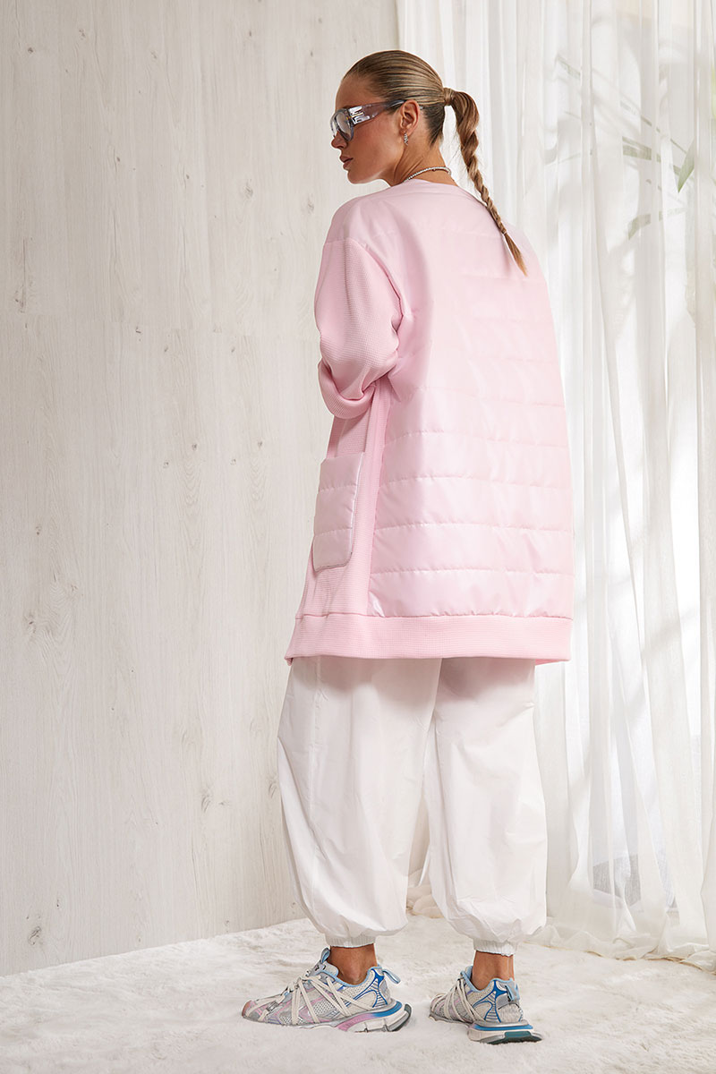Кардиган прямого силуэта, выполнен из смесовой ткани, частично на авторской вискозной подкладке Изделие прямое. Центральная застежка на планку. Изделие без воротника. Перед прямой, выполнен из отделочной ткани(вафельки). На полочках накладные карманы. Спинка выполнена из плащевой ткани. По спинке вставлен izosoft. Спущенная линия плеча. Длинный прямой рукав. Низ изделия на притачной планке.
